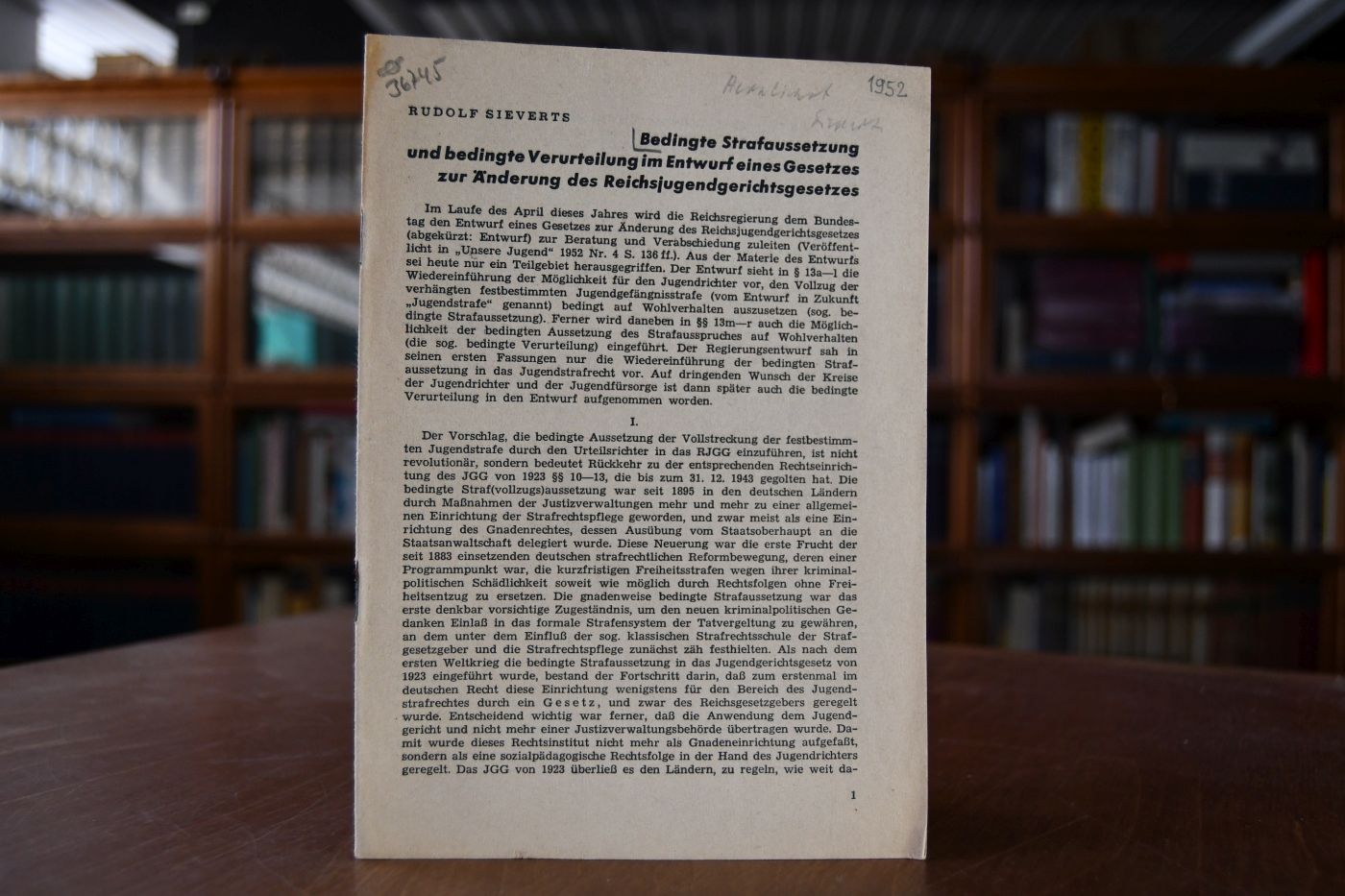 Bedingte Strafaussetzung und bedingte Verurteilung im Entwurf eines Gesetzes zur Änderung des Reichsjugendgesetzes.