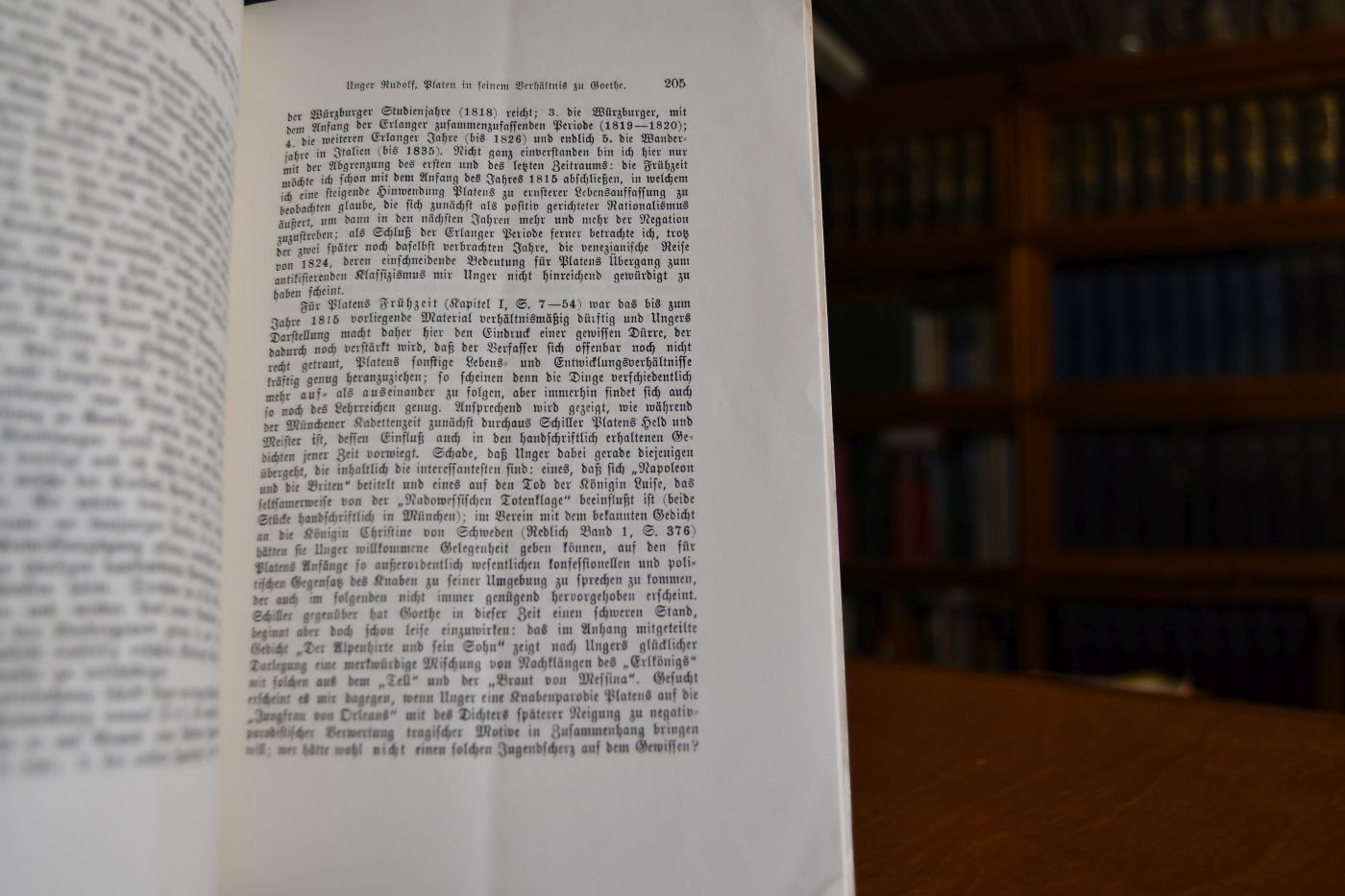 Buchbesprechungen von 1. Unger, Rudolf, Platen in seinem Verhältnis zu Goethe. 2. August Graf von Paltens dramatischer Nachlass. 3. Fries Albert, Platen-Forschungen.
