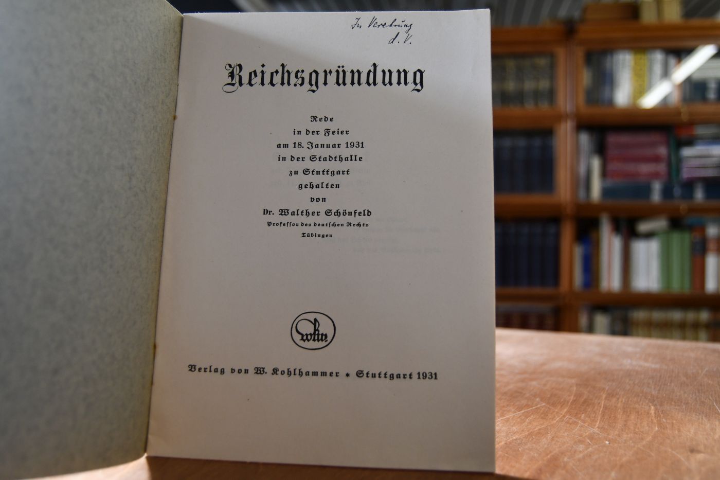 Reichsgründung. Rede in der Feier am 18. Januar 1931 in der Stadthalle zu Stuttgart.