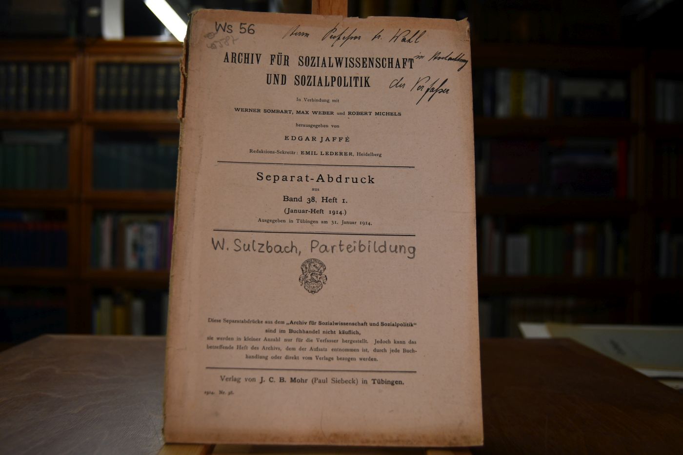 Sonderdruck aus: "Archiv für Sozialwissenschaft und Sozialpolitik" Band 38, Heft I.