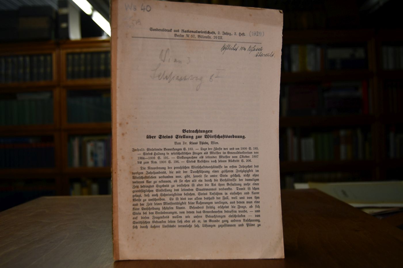 Betrachtungen über Steins Stellung zur Wirtschaftsordnung.