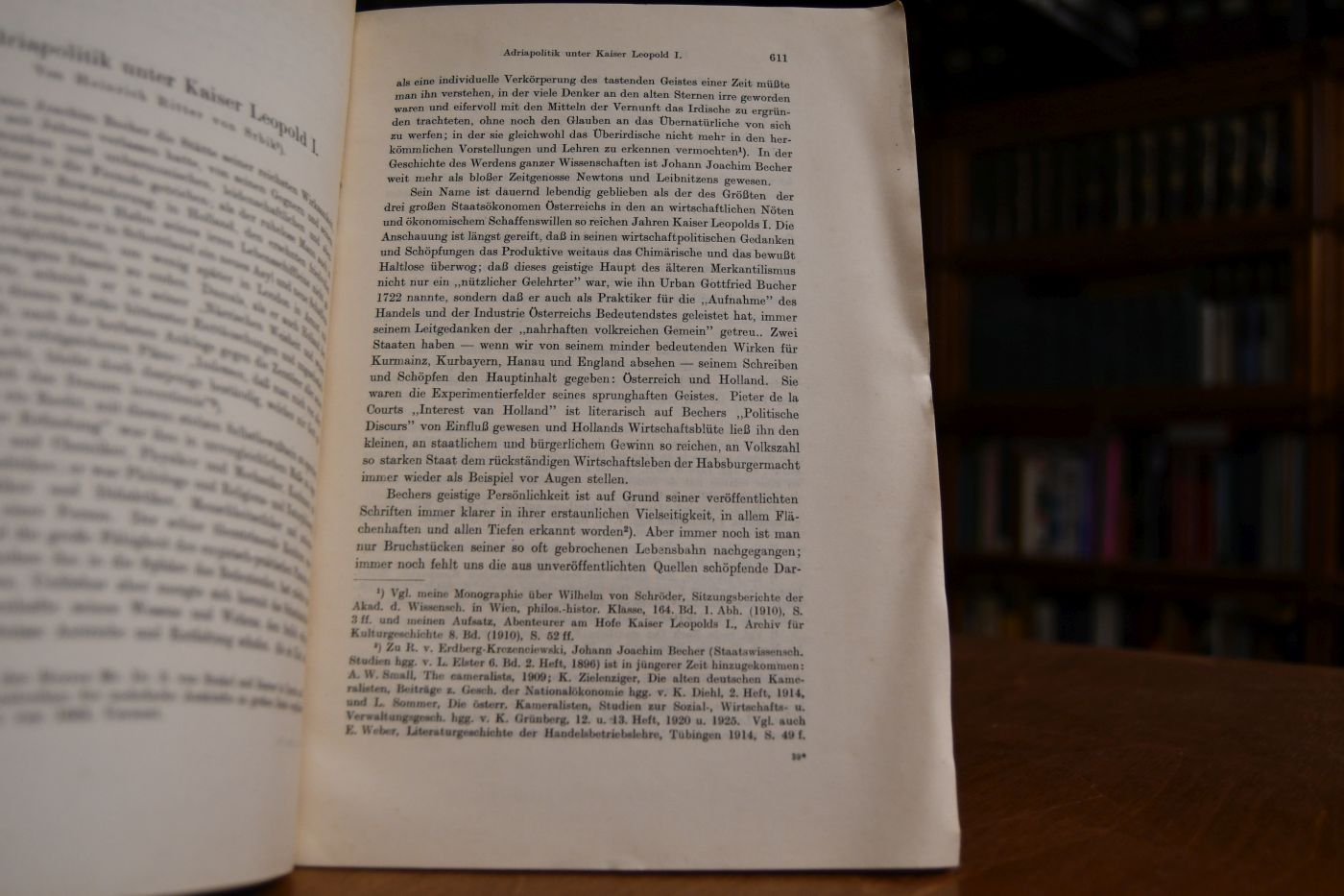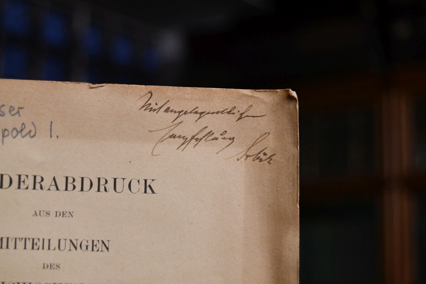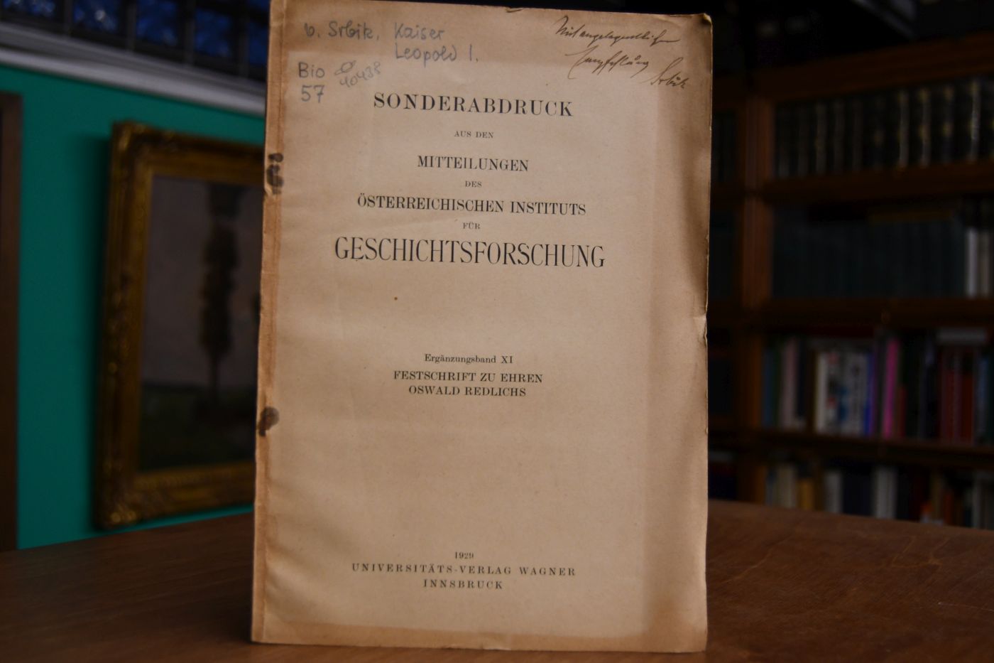 Beschreibung Einband berieben, bestoßen, gebräunt, mit Einrissen und korrodierten Heftklammern. Eselsohrig. Mit handschriftlicher Widmung von Heinrich Ritter von Srbik auf dem Vorderdeckel.
