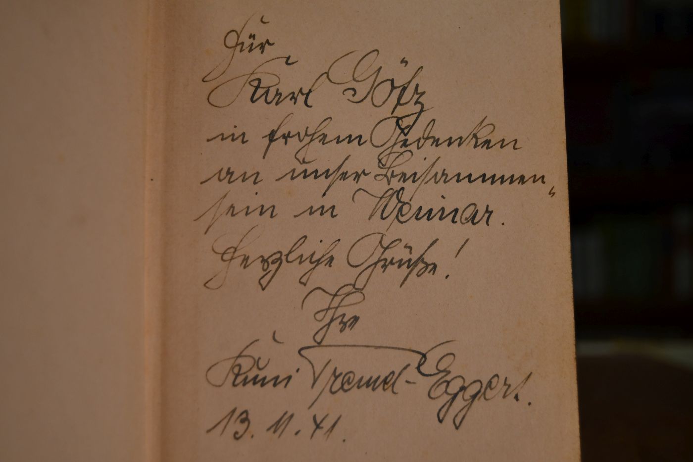 Beschreibung Einband berieben, bestoßen, fleckig und mit Einrissen. Schnitt fleckig. Mit handschriftlicher Widmung von Kuni Tremel-Eggert an Karl Götz auf dem fliegenden Vorsatz.