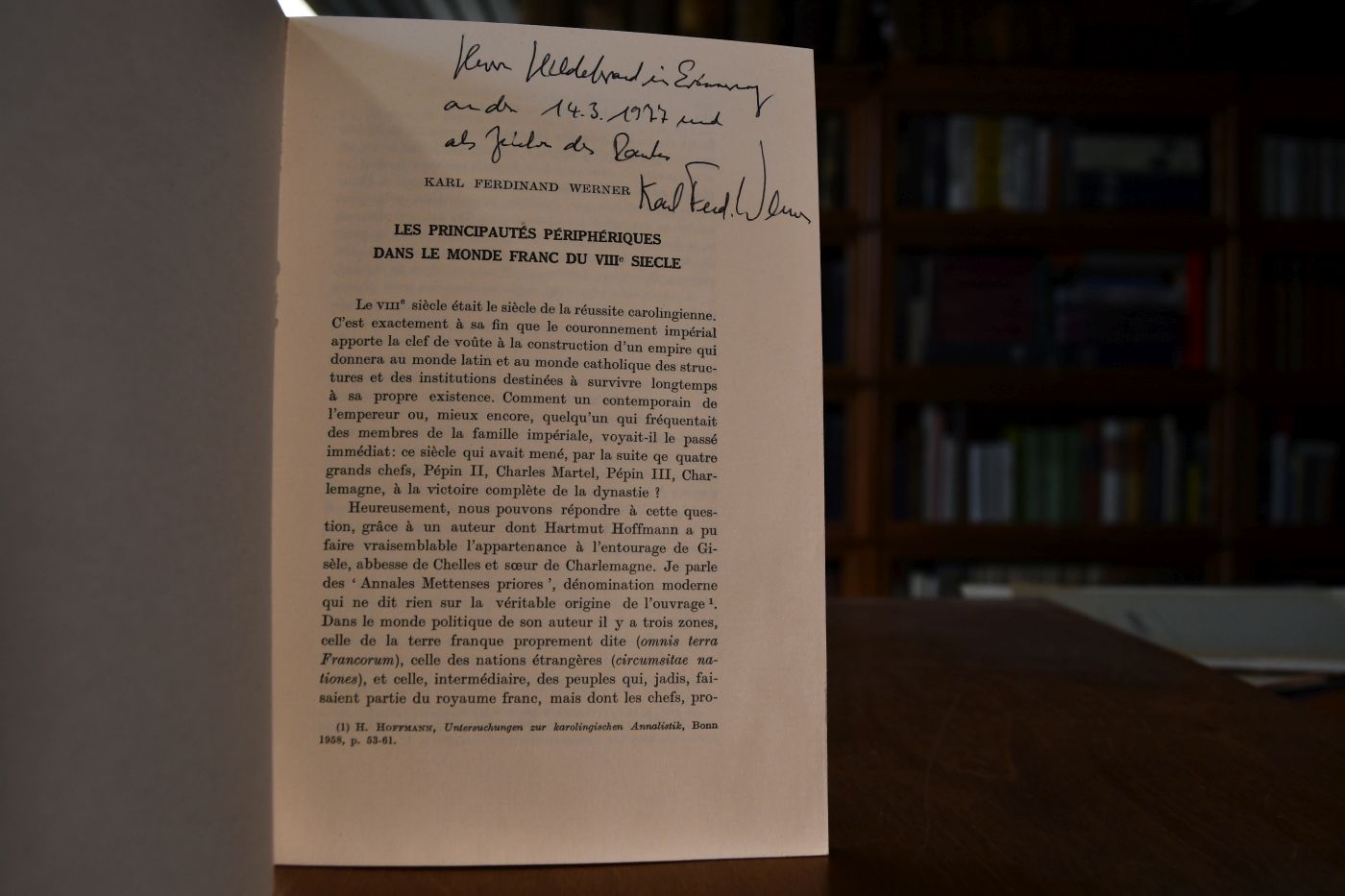 Beschreibung Einband beriebe und mit Randeinrissen. Mit handschriftlicher Widmung von Karl Ferdinand Werner an Klaus Hildebrand auf der ersten Textseite.