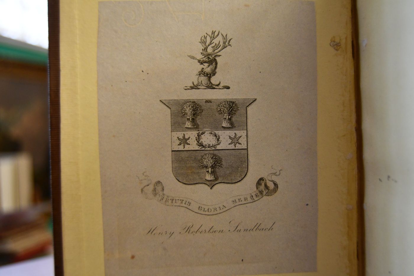 Beschreibung Einband berieben, b estoßen und mit Einrissen am Rücken. Hinterer Falz geöffnet. Exlibris (Henry Robertson Sandbach) auf Spiegel und anderer handschriftlicher Besitzereintrag auf fliegendem Vorsatz. Das Frontinspiz feuchtigkeitsrandig. Gelegentlich etwas fleckig.