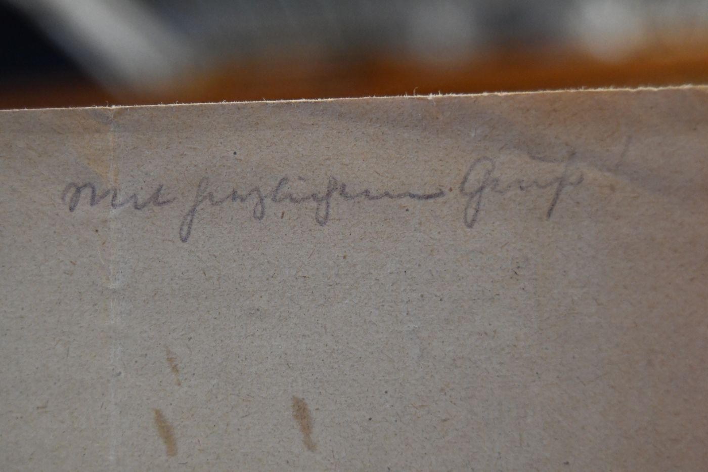 Beschreibung Vorderseite lichtrandig PApierbedingt gebräunt. Mit durchgehendem Längsfals und handschriftlicher Widmung von Ludwig Ziehen auf der Vorderseite.