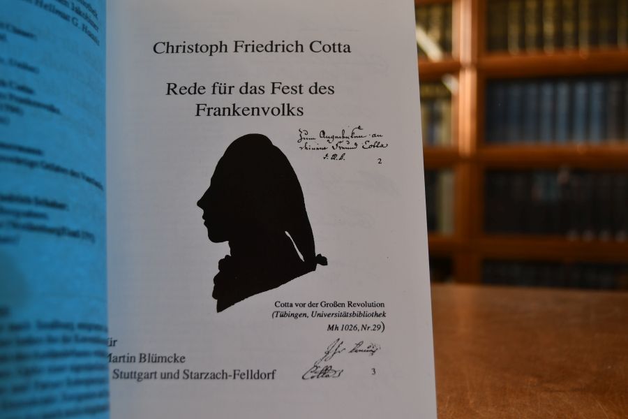 Christoph Friedrich Cotta. Rede für das Fest des Frankenvolks und zum Andenken der Räumung seines Gebiets. Straßburg am dritten Dekadi des Vendemiaire im dritten Jahr der siegenden Republik [21. Oktober 1794]. Mit Cotta-Briefen, Dokumenten der Terreur, einem Stuttgarter Demokratendenkmal, einer biographischen Skizze zu Cotta von Hellmut G. Haasis und zwei neuen Kaltnadelradierungen von Angela Laich (Berlin). (= Reprint nach dem Exemplar in der Bibliothèque Nationale et Universitaire de Strasbourg. Blauwolkengasse Band 2.)