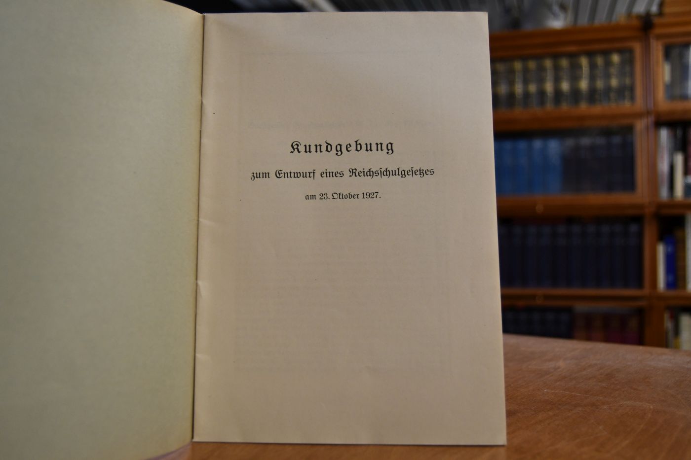 Die Liberale Vereinigung zum Reichsschulgesetz. Kundgebung zum Entwurf eines Reichsschulgesetzes am 23. Oktober 1927.