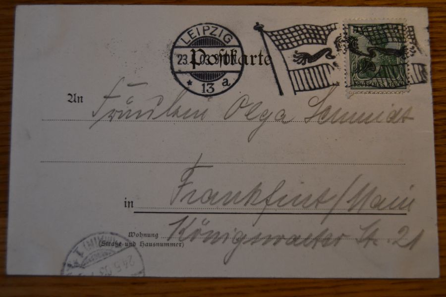 Ecken wenig bestoßen und mit Spuren eines Einsteckalbums. Abgangsstempel Leipzig 23.5.1903.