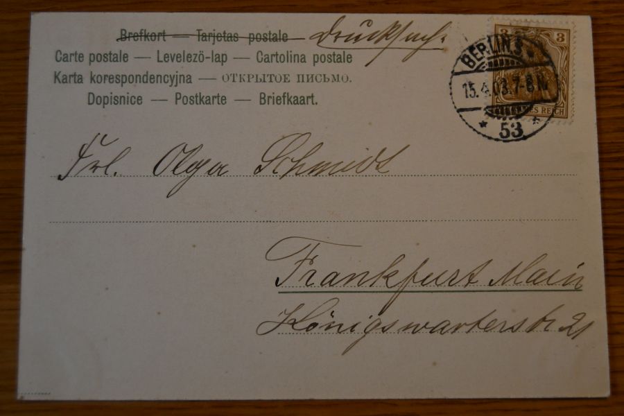 Karte an den Ecken wenig bestoßen und mit Spuren eines Einsteckalbums. Abgangsstempel Berlin 13.4.1903.