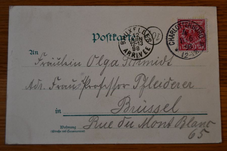 Beschreibung Karte mit Spuren eines Einsteckalbums an den Ecken. Etwas berieben. Karte gelaufen. Aufgabestempel Charlottenburg 11.6.1898. Ankunftsstempel Bruxelles 12.6.1898.