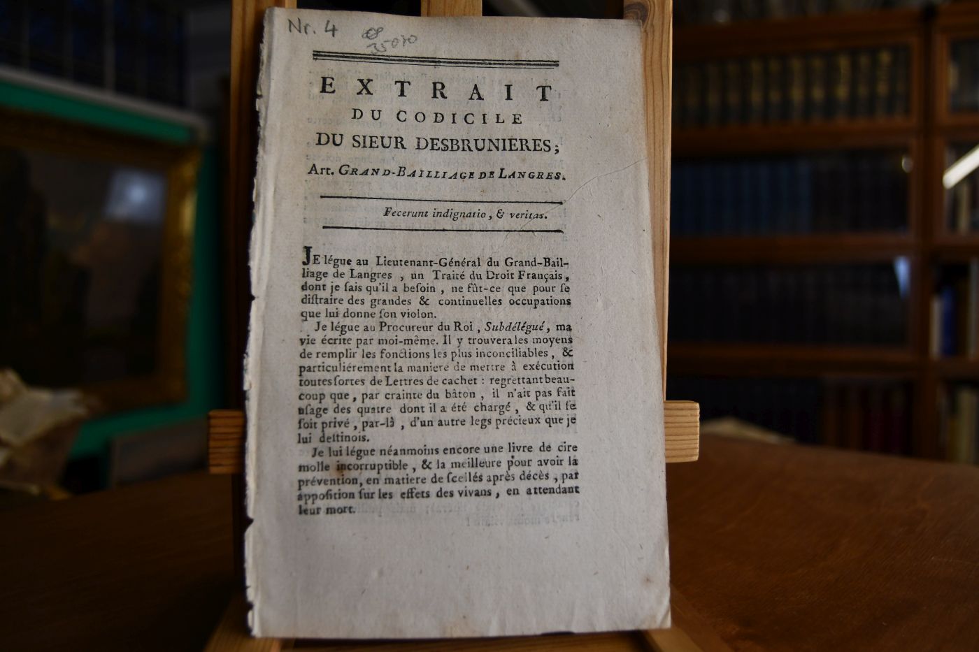 Extrait du codicile du Sieur Desbrunieres; Art. Grand-Bailliage de Langres.