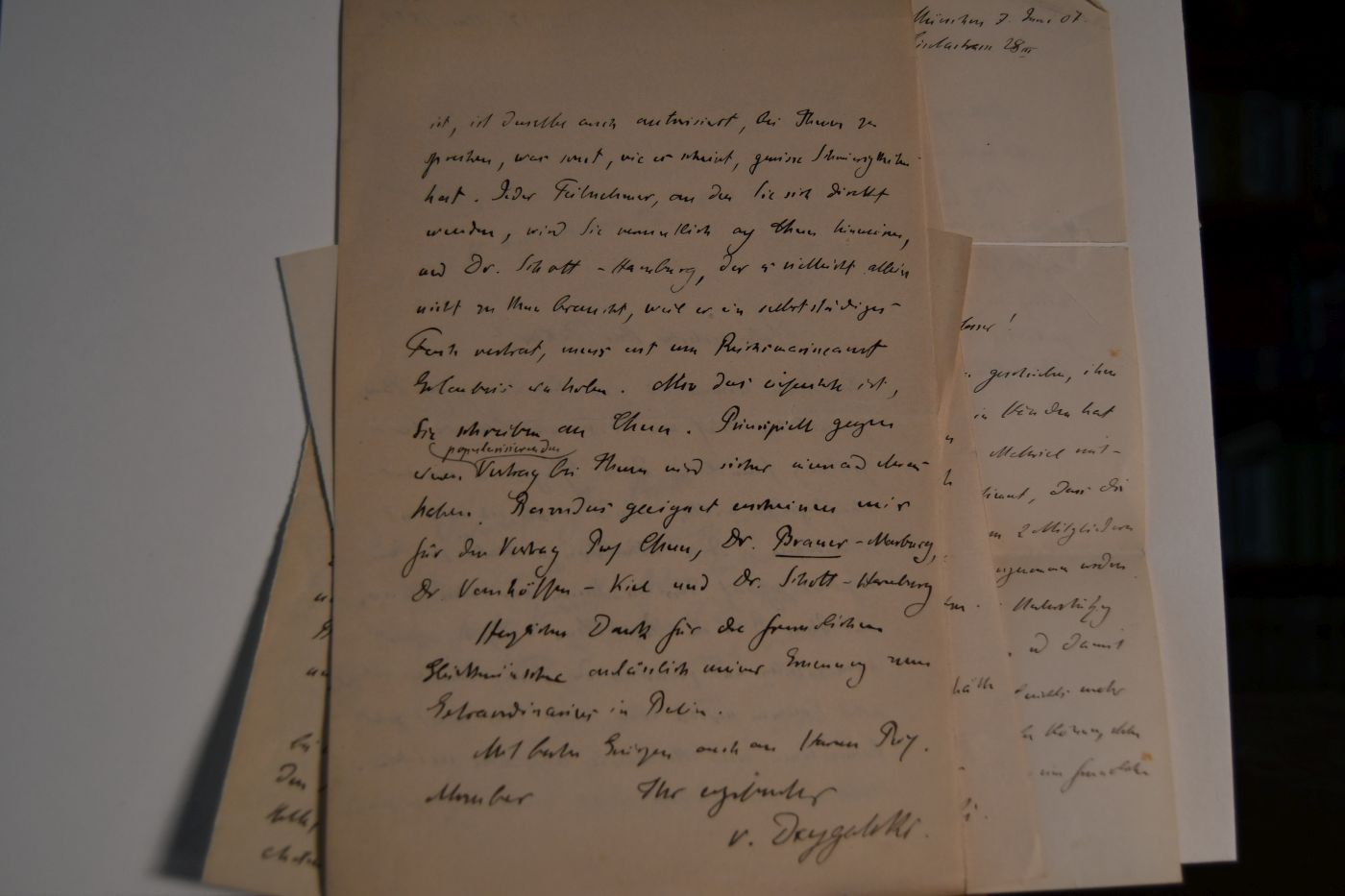 10 handschriftliche Briefe und eine beschriebene Visitenkarte des deutschen Geographen, Geophysikers und Polarforschers Erich von Drygalski (1865-1949) vom Januar 1896 - Februar 1925 an den Danziger Lehrer und Botaniker Konrad Lakowitz (1859-1945).