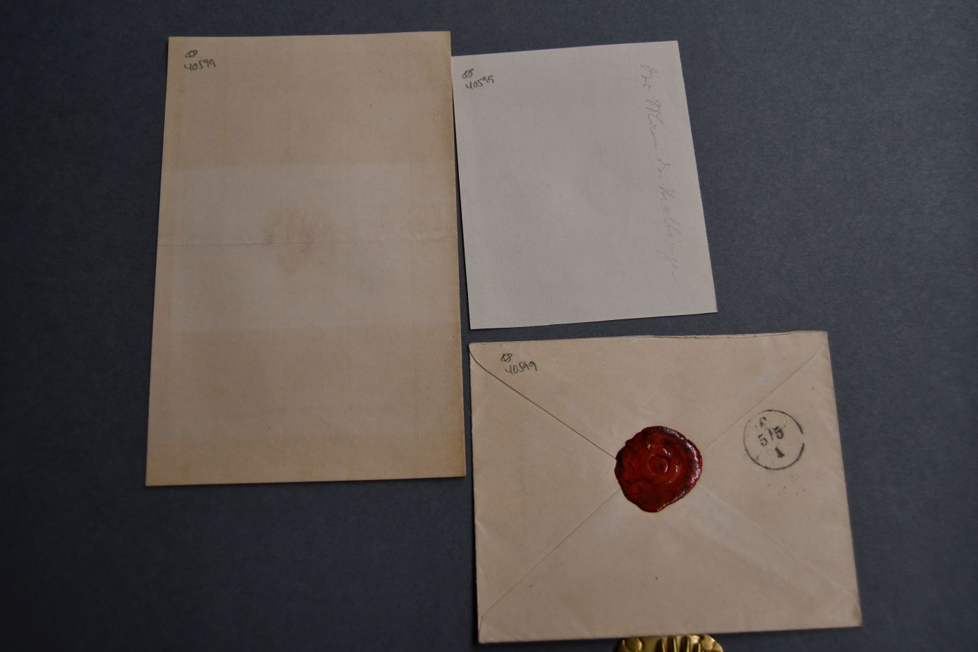Beschreibung Durchgehender Querfalz. Mathilde Mallinger schreibt: "... Tausend und aber tausend Dank für die wahrhaft rührende Aufmerksamkeit die SIe, unter allen Männern der Presse der Einzige, mir stets erweisen. Bitte übernehmen Sie meine Danksagung bei Frl. Stahlknecht und Herrn Beck! ...". Beiliegend der mit versiegelte, handschriftliche Briefumschlag. Ebenfals beiliegend das handschriftliche Schreiben ihres Ehemanns Otto von Schimmelpfennig an die Theateragentur Ferdinand Röder in Berlin vom 3. Februar 1880 (Ferdinand Röder starb am 30. Juni 1880!): "... Anbei beehre ich mich die Verträge für Hannover beizulegen. ...".
