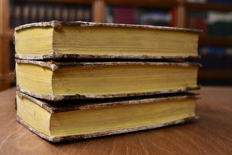 Format 21 x 13 cm, Halbleder der Zeit mit 5 Bünden, zwei Rückenschildern und Rückenvergoldung