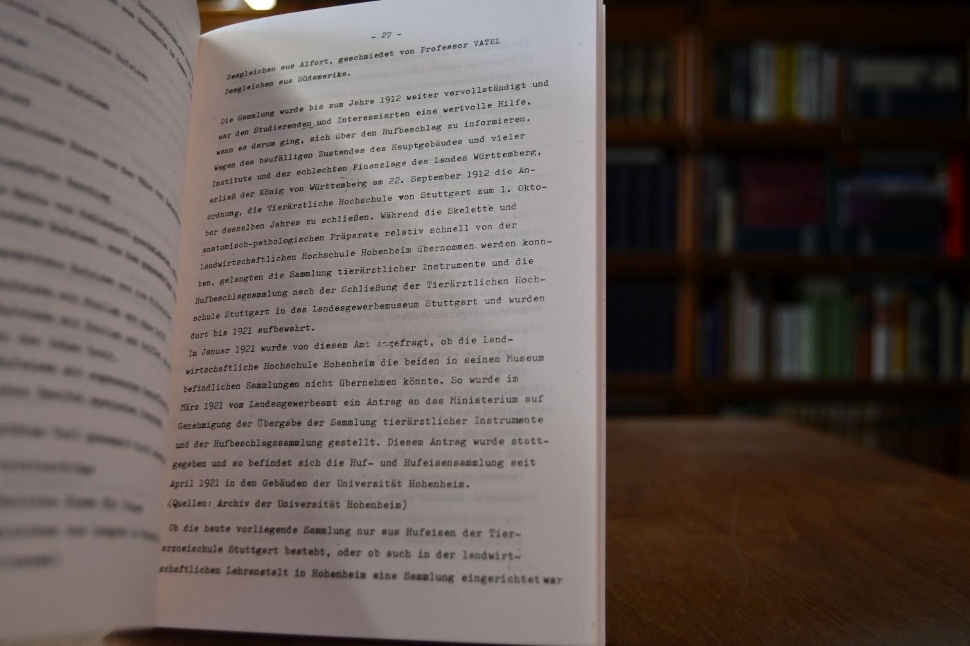Die Huf- und Hufeisensammlung des Instituts für Tiermedizin und Tierhygiene mit Tierklinik der Universität Hohenheim, zugleich ein Rückblick auf die historische Entwicklung des Hufeisens.