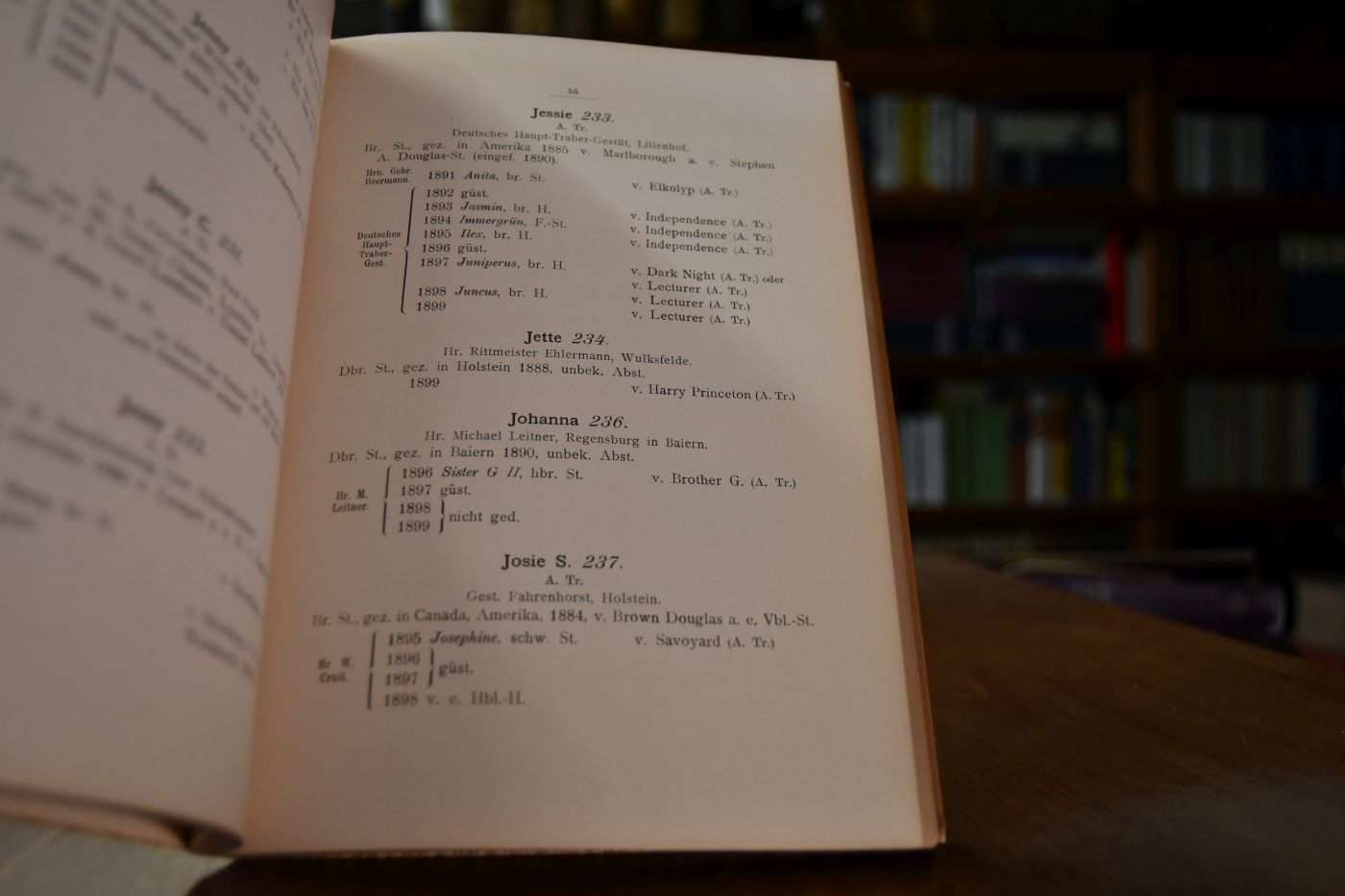 Beschreibung Einband berieben, bestoßen und fleckig. Schnitt fleckig. Besitzerstempel (Deutsche Gesellschaft für Züchtungskunde) auf Vorderdeckel und Titel.