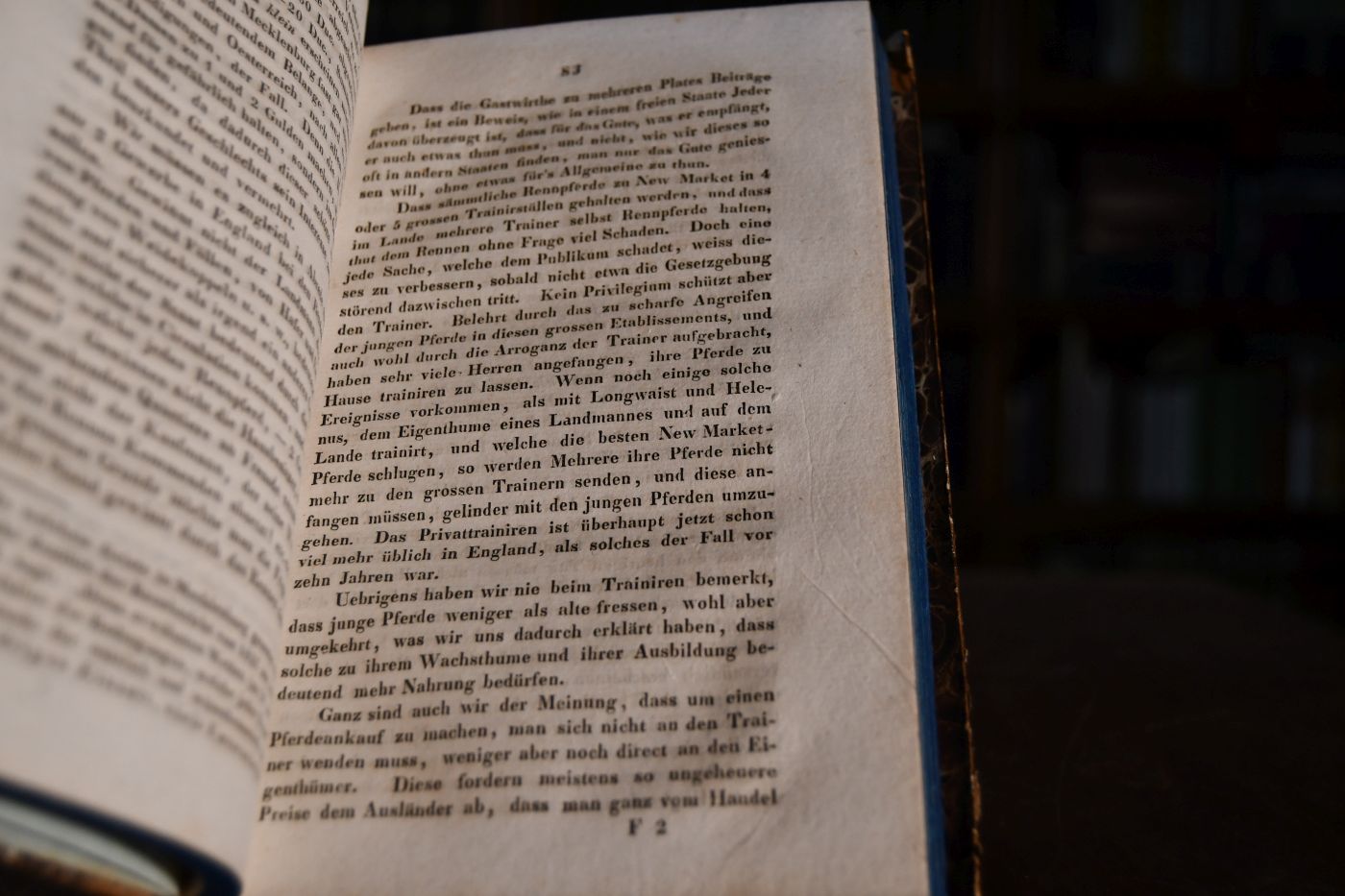 Einiges über edle Pferde Veranlasst durch folgende Schriften 1. Versuch eines Beweises, dass die Pferderennen in England, so wie sie jetzt bestehen, kein wesentliches Beförderungsmittel der bessern edlen Pferdezucht in Deutschland werden können, von Herrn v. Burgsdorf, Königl. Preuss. Landstallmeister etc. etc. ; 2. Ueber die Eigenschaften des Soldatenpferdes und die Mittel die Zucht desselben zu befördern, von Herrn G. G. Ammon, Aufseher des Königl. Preuss. Hauptgestüts zu Vesra (1830) Biel, Gottlieb Wilhelm Ludwig Friedrich von Dresden Hilscher zur Merkliste hinzufügen Details Verfügbarkeit UID kobvindex_ZMS08140412 Umfang XXVIII, 330 Seiten, [1] Blatt Sprache Deutsch Bibliothek Standort Signatur Verfügbarkeit Zentrum f. Militärgeschichte Bibliothek R 05 271 (keine Fernleihe) Evtl. verfügbar BibTip Andere fanden auch interessant ... Buch Fernleihwunsch Zentrum f. Militärgeschichte Evtl. verfügbar Einiges über edle Pferde Veranlasst durch folgende Schriften 1. Versuch eines Beweises, dass die Pferderennen in England, so wie sie jetzt bestehen, kein wesentliches Beförderungsmittel der bessern edlen Pferdezucht in Deutschland werden können, von Herrn v. Burgsdorf, Königl. Preuss. Landstallmeister etc. etc. ; 2. Ueber die Eigenschaften des Soldatenpferdes und die Mittel die Zucht desselben zu befördern, von Herrn G. G. Ammon, Aufseher des Königl. Preuss. Hauptgestüts zu Vesra (1830) Biel, Gottlieb Wilhelm Ludwig Friedrich von Dresden Hilscher zur Merkliste hinzufügen Details Verfügbarkeit UID kobvindex_ZMS08140412 Umfang XXVIII, 330 Seiten, [1] Blatt Sprache Deutsch Bibliothek Standort Signatur Verfügbarkeit Zentrum f. Militärgeschichte Bibliothek R 05 271 (keine Fernleihe) Evtl. verfügbar BibTip Andere fanden auch interessant ... Buch Fernleihwunsch Zentrum f. Militärgeschichte Evtl. verfügbar Buch Einiges über edle Pferde Veranlasst durch folgende Schriften 1. Versuch eines Beweises, dass die Pferderennen in England, so wie sie jetzt bestehen, kein wesentliches Beförderungsmittel der bessern edlen Pferdezucht in Deutschland werden können, von Herrn v. Burgsdorf, Königl. Preuss. Landstallmeister etc. etc. ; 2. Ueber die Eigenschaften des Soldatenpferdes und die Mittel die Zucht desselben zu befördern, von Herrn G. G. Ammon, Aufseher des Königl. Preuss. Hauptgestüts zu Vesra (1830) Biel, Gottlieb Wilhelm Ludwig Friedrich von Dresden Hilscher zur Merkliste hinzufügen Details Verfügbarkeit UID kobvindex_ZMS08140412 Umfang XXVIII, 330 Seiten, [1] Blatt Sprache Deutsch Bibliothek Standort Signatur Verfügbarkeit Zentrum f. Militärgeschichte Bibliothek R 05 271 (keine Fernleihe) Evtl. verfügbar BibTip Andere fanden auch interessant ... Buch Fernleihwunsch Zentrum f. Militärgeschichte Evtl. verfügbar Einiges über edle Pferde. Veranlasst durch folgende Schriften 1. Versuch eines Beweises, dass die Pferderennen in England, so wie sie jetzt bestehen, kein wesentliches Beförderungsmittel der bessern edlen Pferdezucht in Deutschland werden können, von Herrn v. Burgdorf, Königl. Preuss. Landstallmeister etc. etc. 2. Ueber die Eigenschaften des Soldatenpferdes und die Mittel die Zucht desselben zu befördern, von Herrn G.G. Ammon, Aufseher des Königl. Preuss. Hauptgestüts zu Vesra.