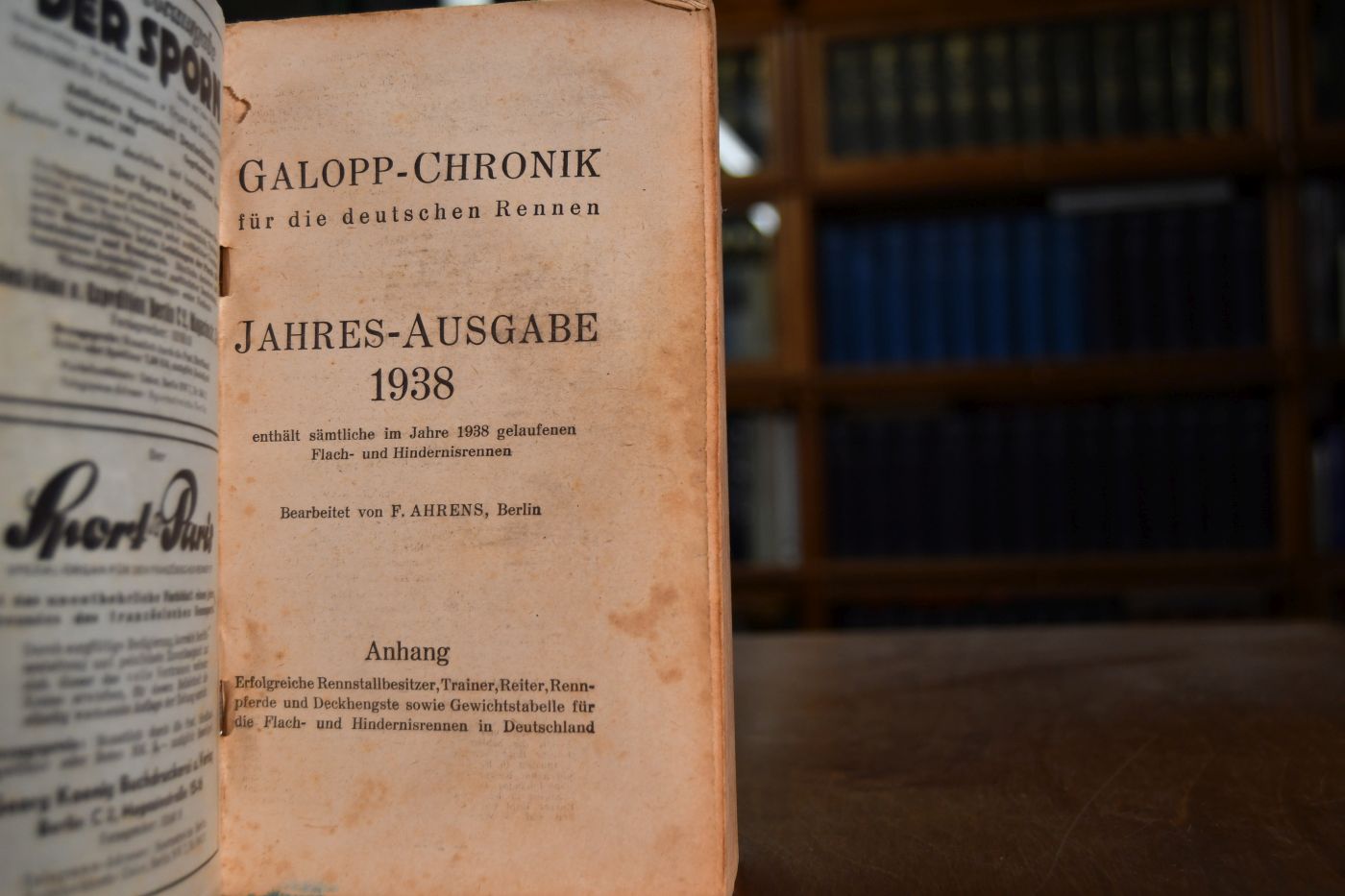 Galopp-Chronik für die deutschen Rennen. Jahres-Ausgabe 1938, enthält sämtliche im Jahre 1938 gelaufenen Flach- und Hindernisrennen.