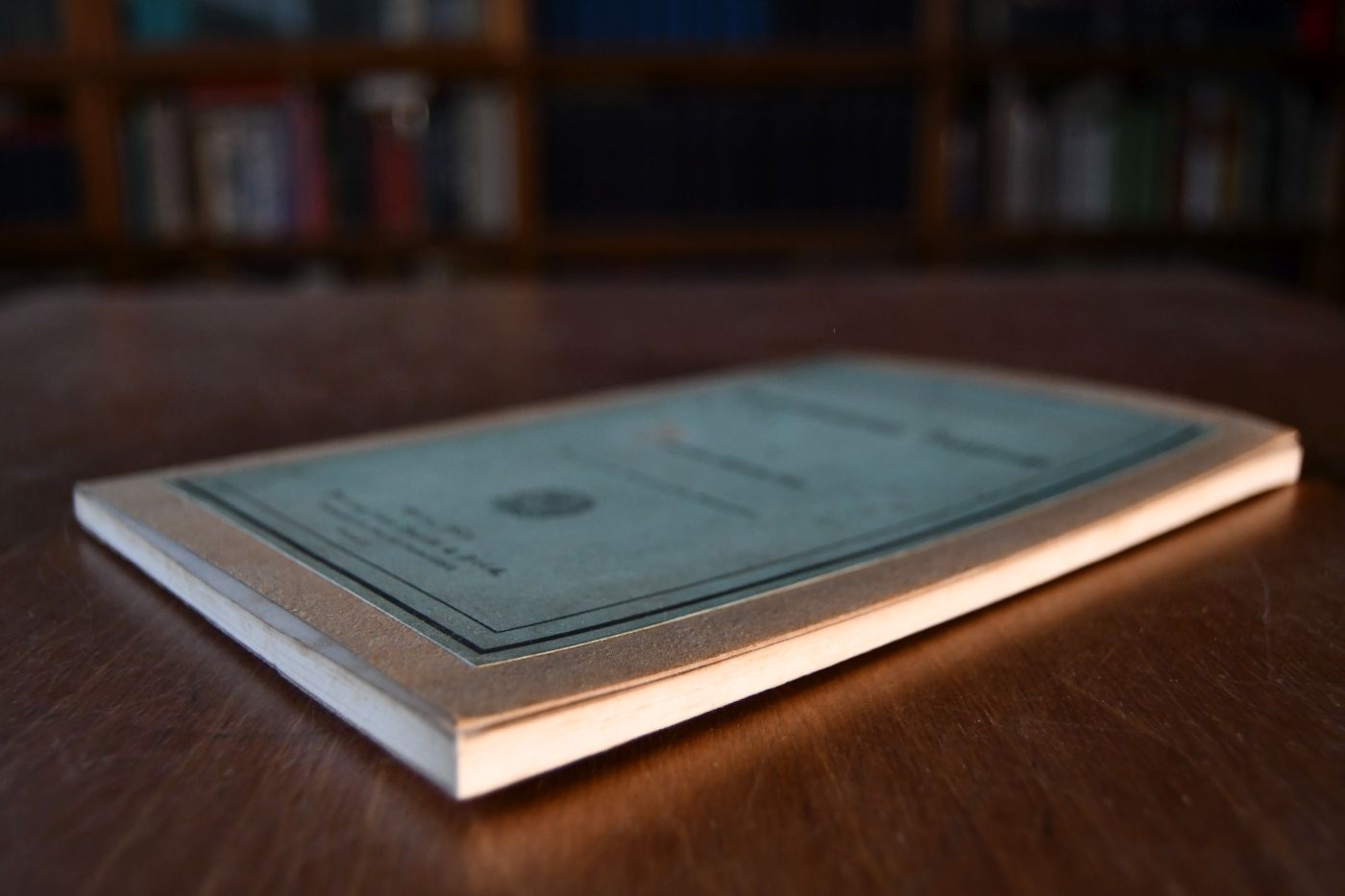 Format 22 x 15 cm, neueres Halbleinen mit aufmontiertem Broschurdeckel