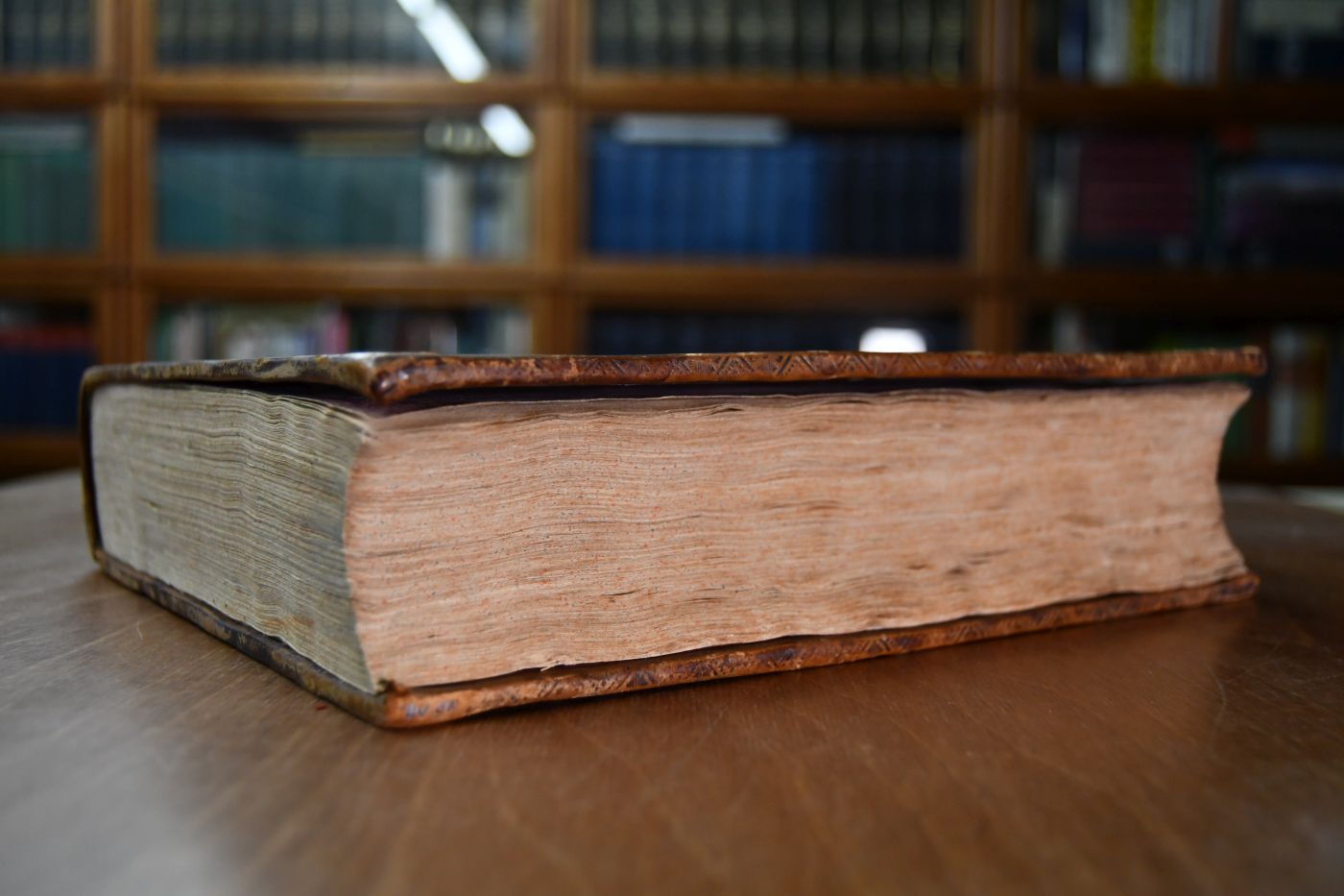 Format 26 x 20 cm, Leder auf 5 Bünden mit Rückenschild und -vergoldung