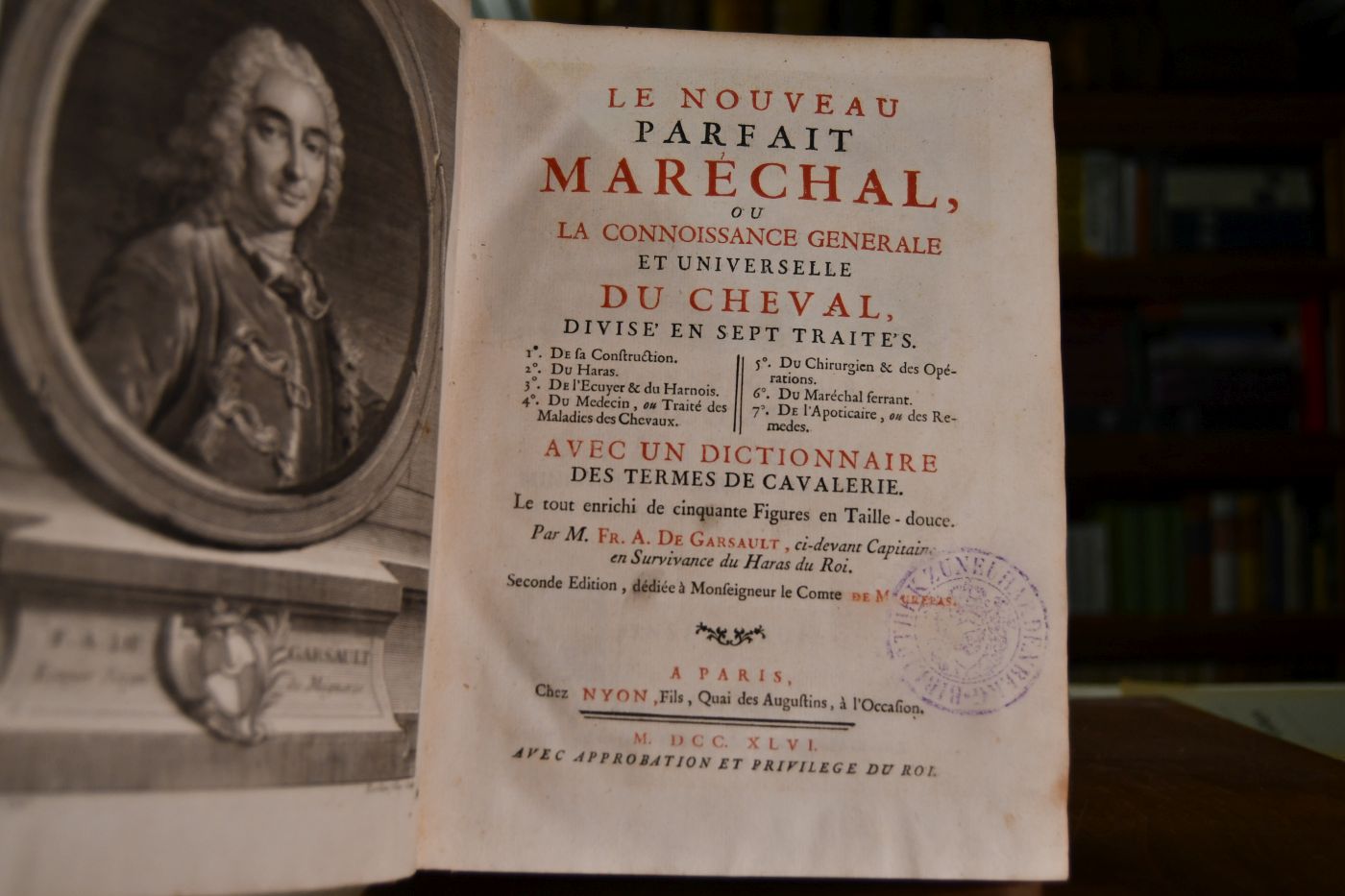 Le Nouveau Parfait Marechal, ou La Connoissance Genberale et universelle du Chevaux, divise` en sept Traite`s. 1. De sa Construction 2. Du Haras 3. De l`Ecuyer & du Harnois 4. Du Medicin, ou TRaite des Maladies des Chevaux 5. Du Chirurgien & des Operations 6. Du Marechal ferrant 7. De l`Apoticaire, on des Remedes. Avec un Dictionnaire des Termes de Cavalerie.