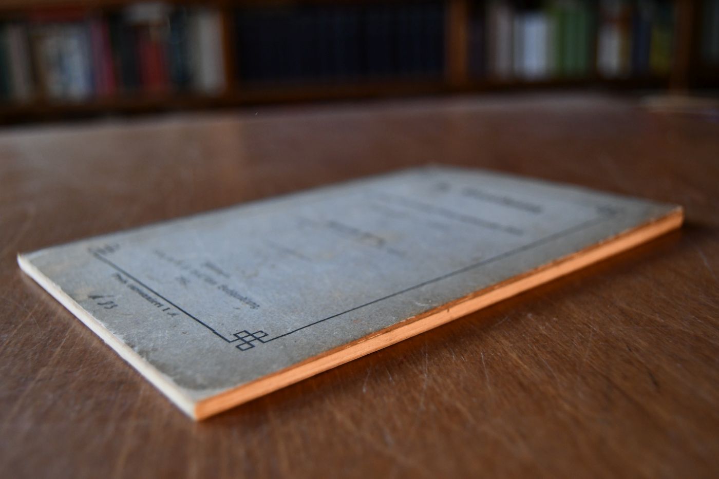 Beschreibung Einband berieben, bestoßen, gebräunt, fleckig, mit etwas Verlust und mit Durchstoßung auf der Rückseite.