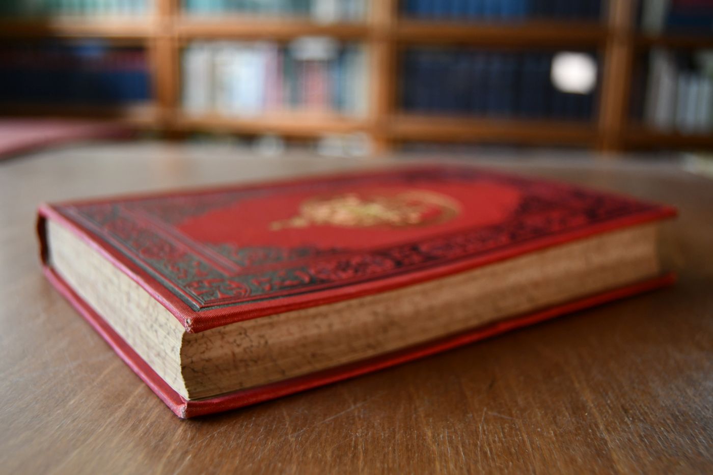 Format 21 x 15 cm, geprägtes Leinen ohne Schutzumschlag mit umlaufenden marmoriertem Schnitt