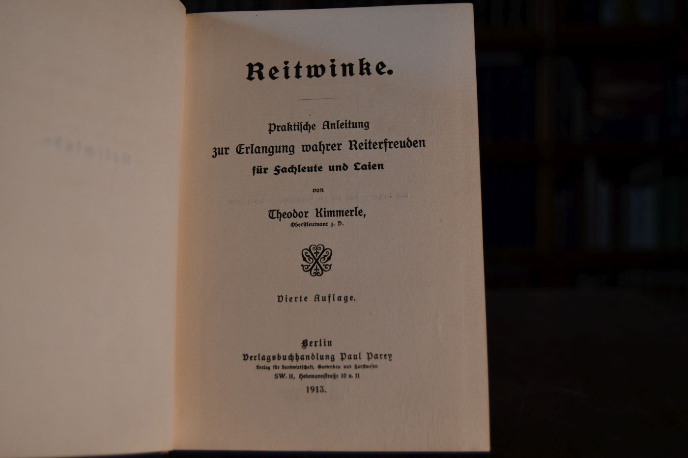 Reitwinke. Praktische Anleitung zur Erlangung wahrer Reiterfreuden für Fachleute und Laien.