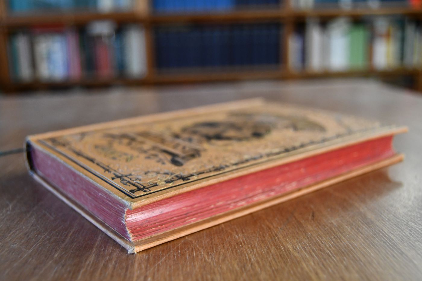Format 20 x 14 cm, geprägtes Leinen ohne Schutzumschlag mit umlaufendem Rotschnitt