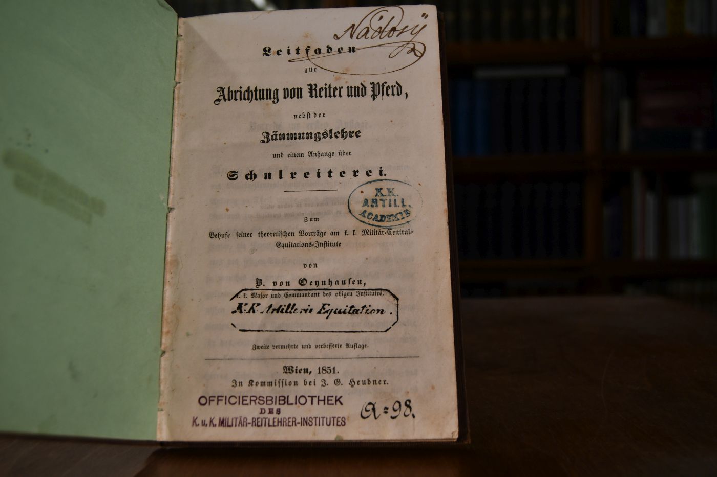 Zum Behufe seiner theoretischen Vorträge am k.k. Militär-Central-Equitations-Institute.