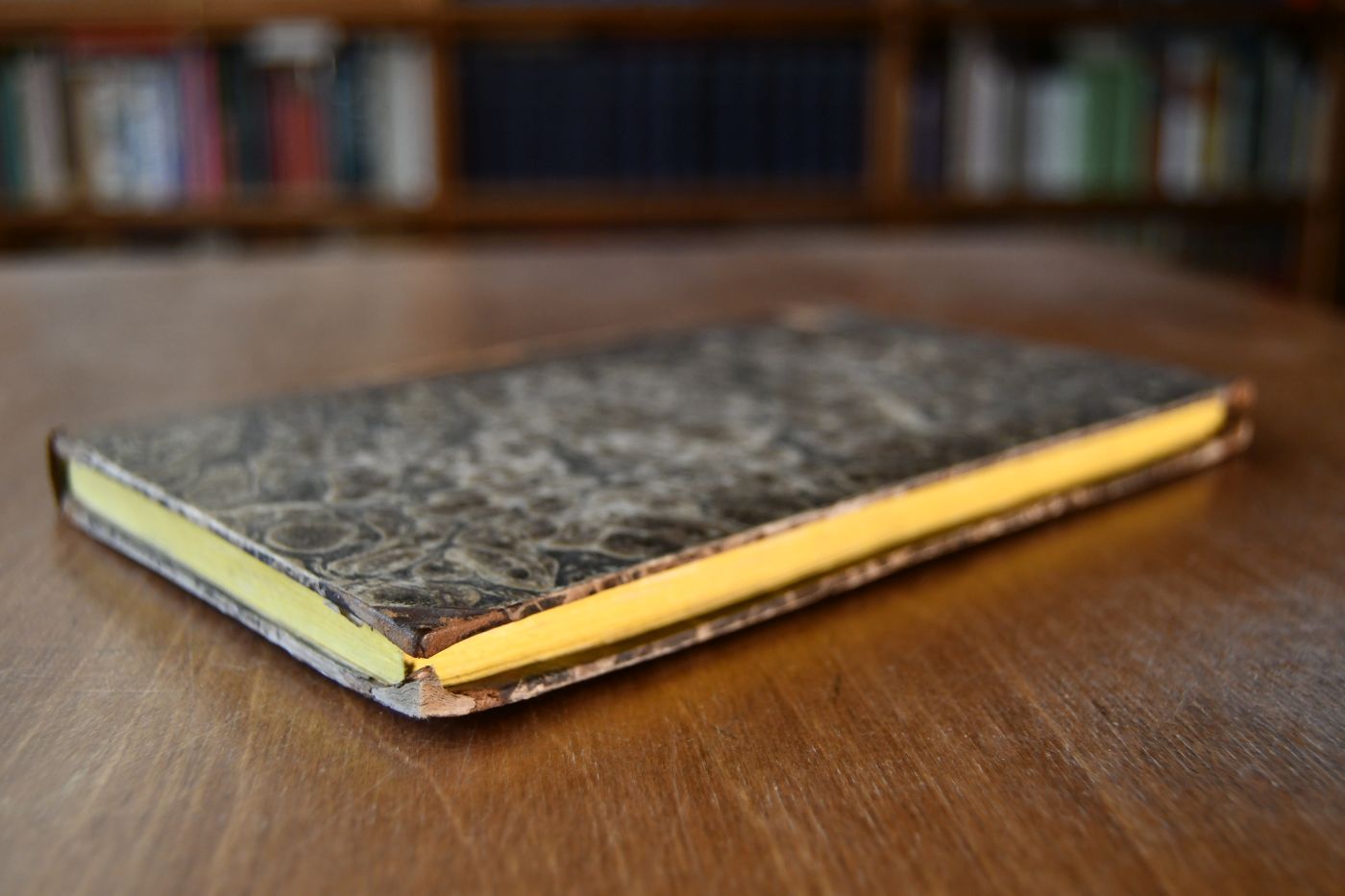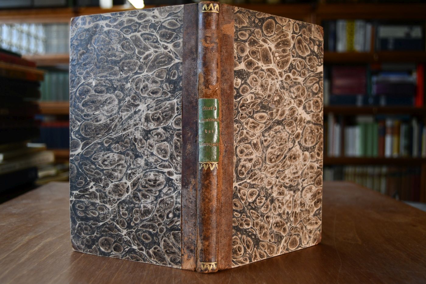 Format 22 x 13 cm, Halbleder der Zeit mit Rückenschild und umlaufenden Farbschnitt