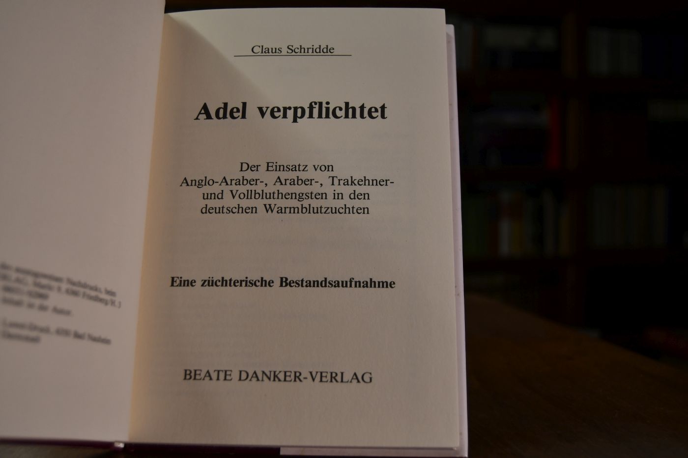 Adel verpflichtet. Der Einsatz von Anglo-Araber-, Araber-, Trakehner- und Vollbluthengsten in den deutschen Warmblutzuchten. Eine züchterische Bestandsaufnahme.