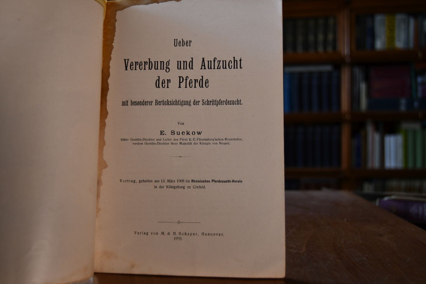 Vortrag gehalten am 13. März 1908 im Rheinischen Pferdezucht-Verein in der Königsburg zu Crefeld