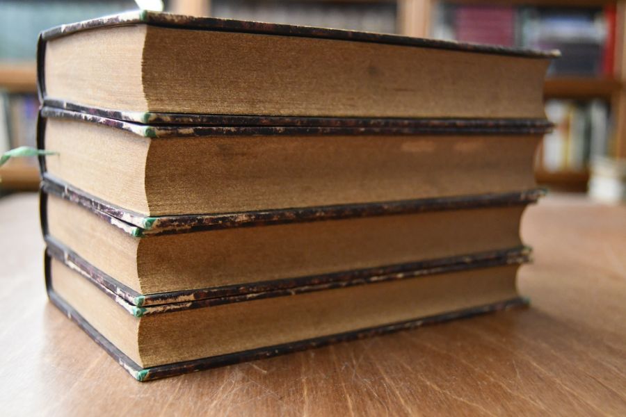 Format 19 x 13 cm, Halbleder mit 5 Bünden und umlaufendem Sprengschnitt