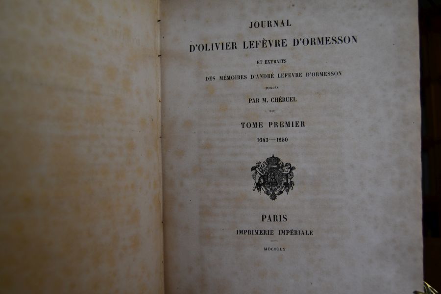 Journal D`Olivier Lefevre D`Ormesson ex extraits des Memoires D`Andre Levevre D`Ormesson. Tome premier 1643-1650 + second 1661-1672