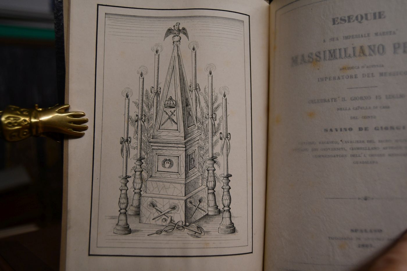 Esequie a sua imperiale maestà Massimiliano primo, arciduca d`Austria, imperatore del Messico celebrate il giorno 15 luglio 1867 nella capella di casa del conte Savino de Giorgi ...