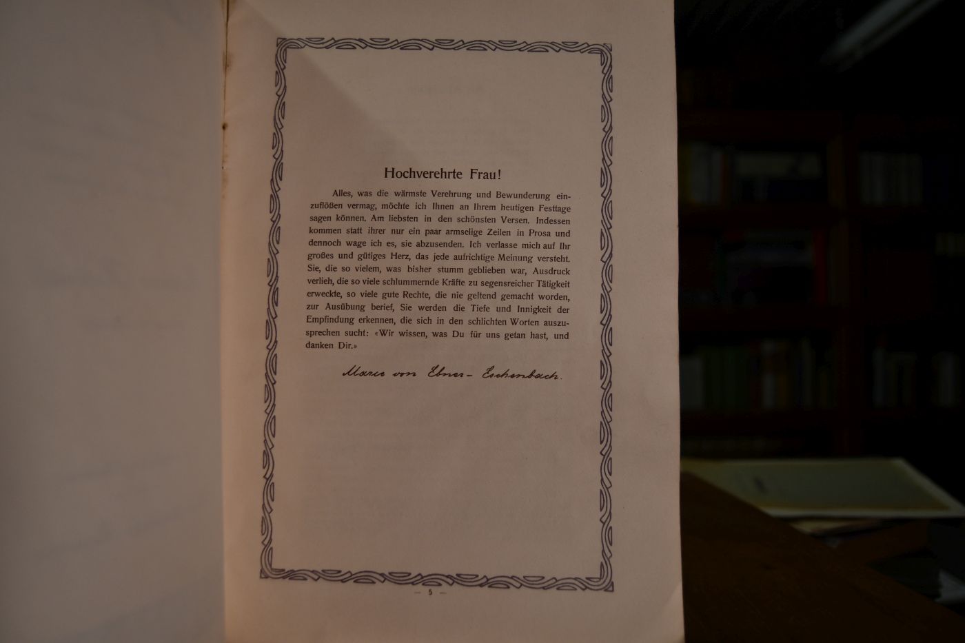 Beschreibung Einband berieben, bestoßen, angeschmutzt, fleckig und mit Einrissen. Heftklammern korrodiert.Durchgehend wellig auf Grund von Feuchtigkeitseinwirkung. Gelegentlich Randeinrisse und -anschmutzungen. Festgabe zum 70. Geburtstag der Pionierin der österreichischen Frauenbewegung und Mutter des ersten Bundespräsidenten. Gutes Belegexemplar.
