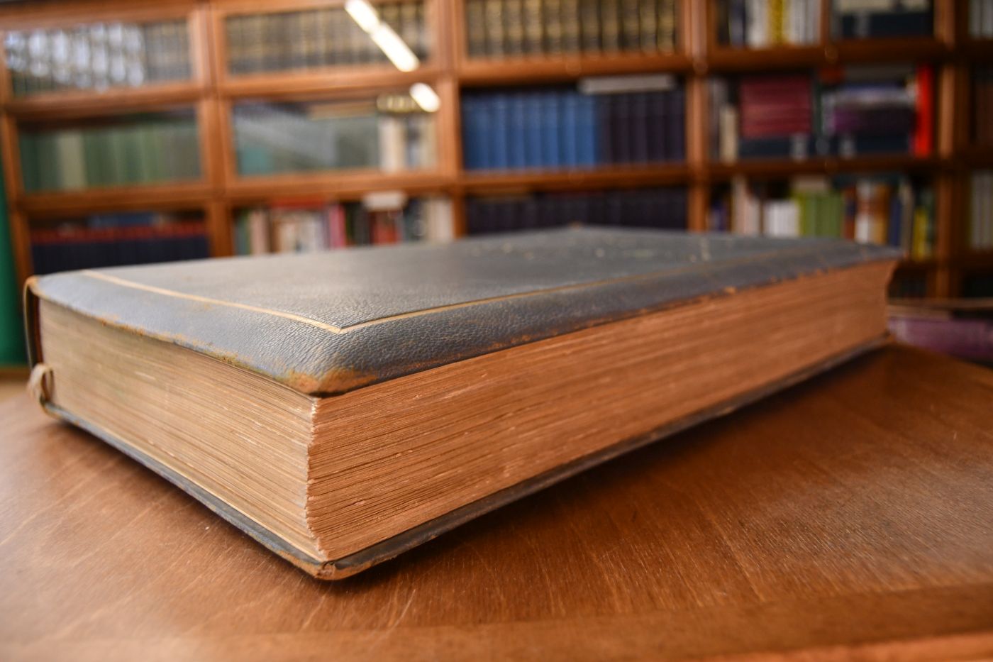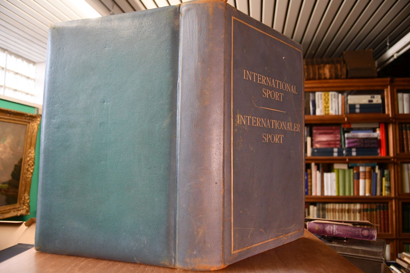 Format 45 x 30 cm, gepolstertes Leder ohne Schutzumschlag mit umlaufenden Goldschnitt