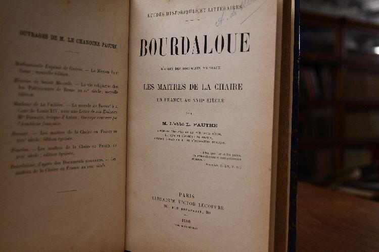 Bourdaloue , d`après des documents nouveaux - Les maîtres de la chaire en France au XVIIe siècle.