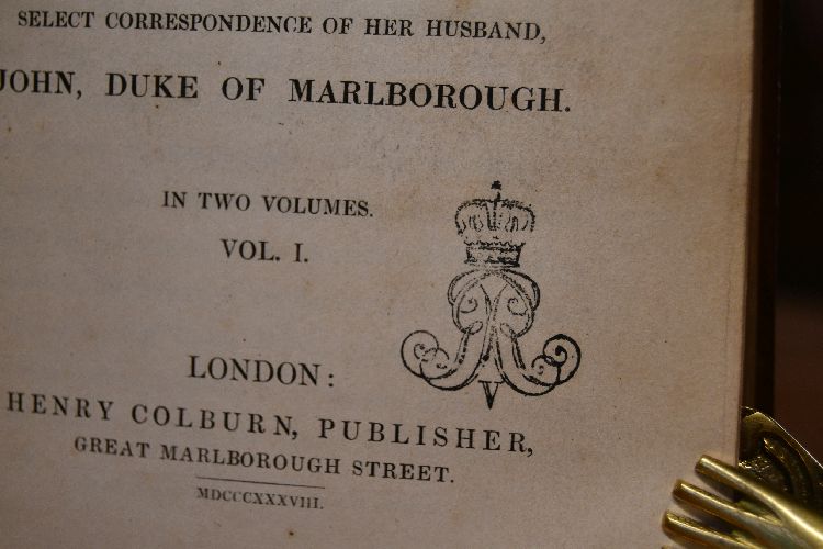 Private Correspondance of Sarah Duchess of Marlborough, illustrative of the court and times of Queen Anne with her sketches and opinions of her contemporaries, and the select correspondance of her husband, John, Duke of Marlborough. 2 Bde. (komplett).