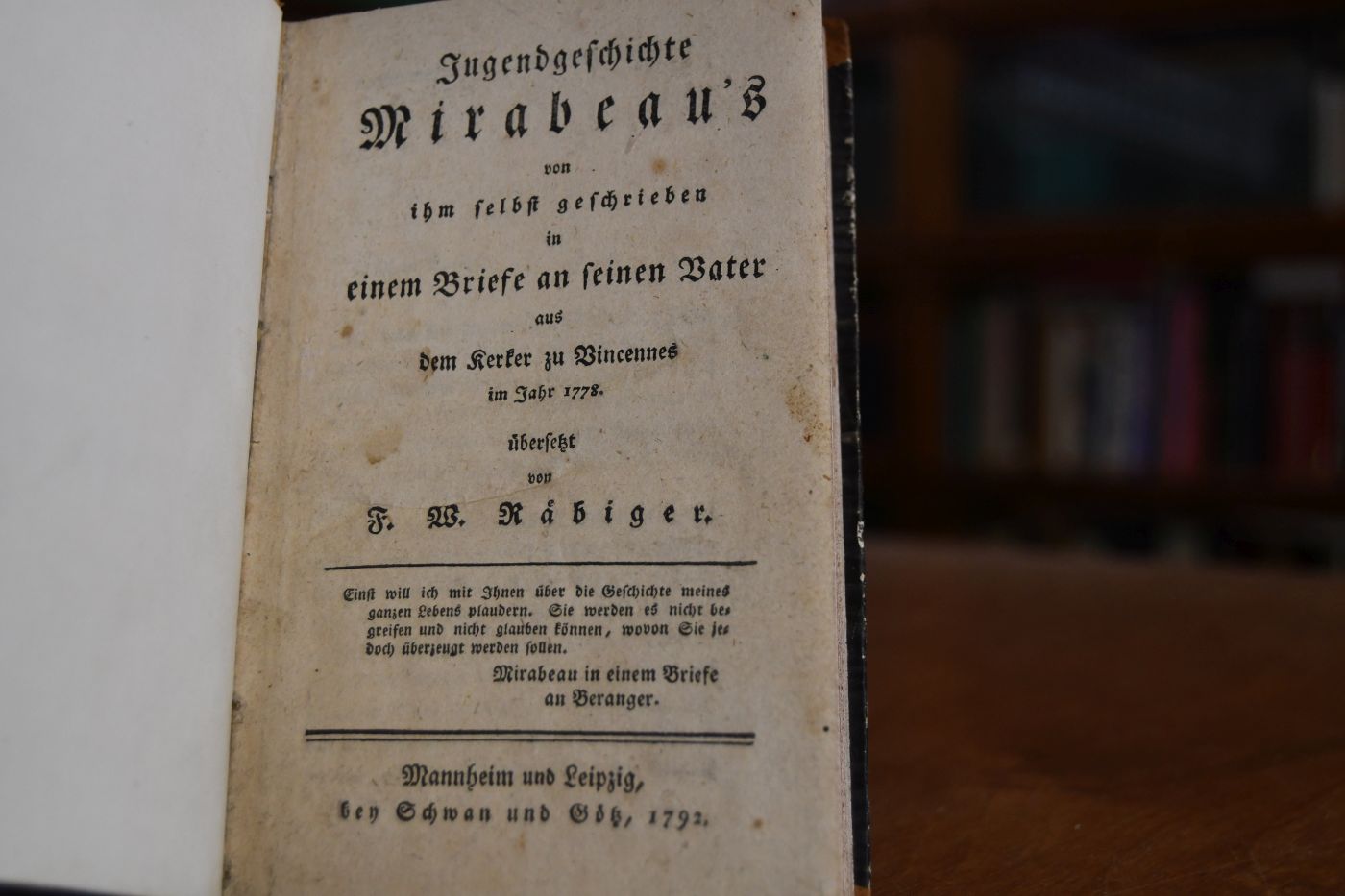 Jugendgeschichte Mirabeau`s von ihm selbst geschrieben in einem Brief an seinen Vater aus dem Kerker zu Vincennes im Jahr 1778.