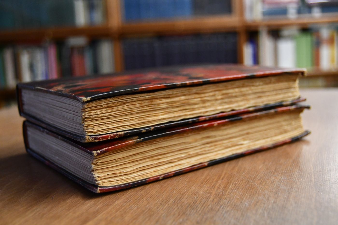 Format 21 x 15 cm, Halbleder mit 4 Bünden und 2 Rückenschilden.
