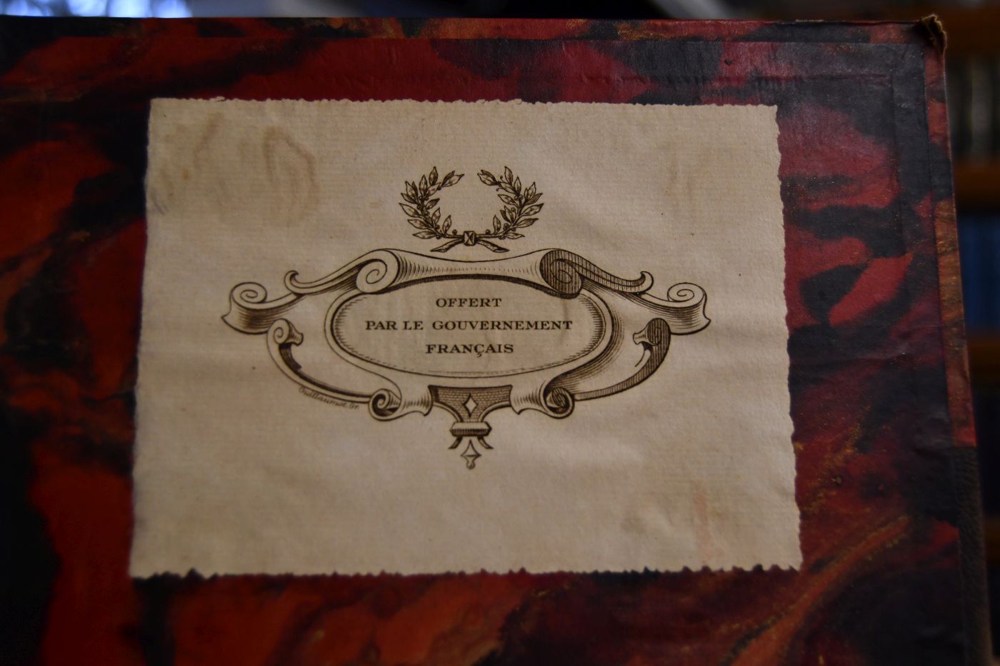 Beschreibung Einband berieben und bestoßen. unbeschnittene Ränder fleckig. Geschenkaufkleber der französischen >Regierung auf den Spiegeln. Dekorative Bände.