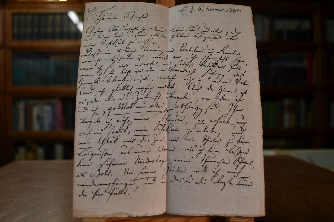 Faksimile eines eigenhändigen Briefes an seine Schwester Christophine. E[rfurt], 6. Novemb.[er] 1782.