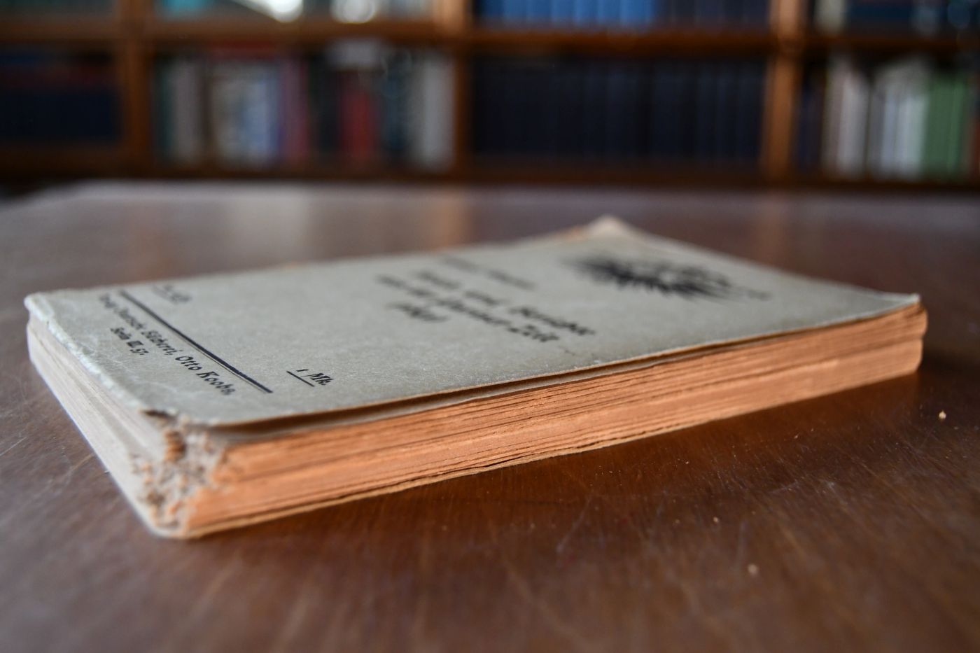 Beschreibung Einband berieben, bestoßen und mit Einrissen. Mäusfraß am unteren Eck. Bindung gelockert. Handschriftlicher Namenseintrag auf Titel. Papierbedingt gebräunt.