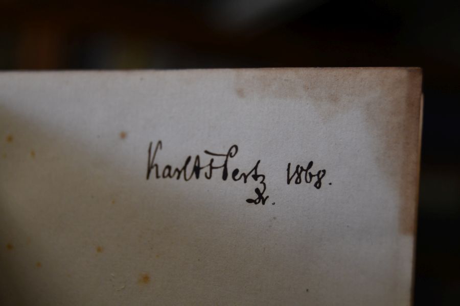 Beschreibung Einband berieben und bestoßen. Auf Vorsätze durchschlagende Lederecken. Handschriftliche Besitzereinträge (Dr. Karl R. Hertz? 1868) auf Spiegel und fliegendem Vorsatz.Immer wieder etwas fleckig. Vereinzelt Bleistiftmarginalien.