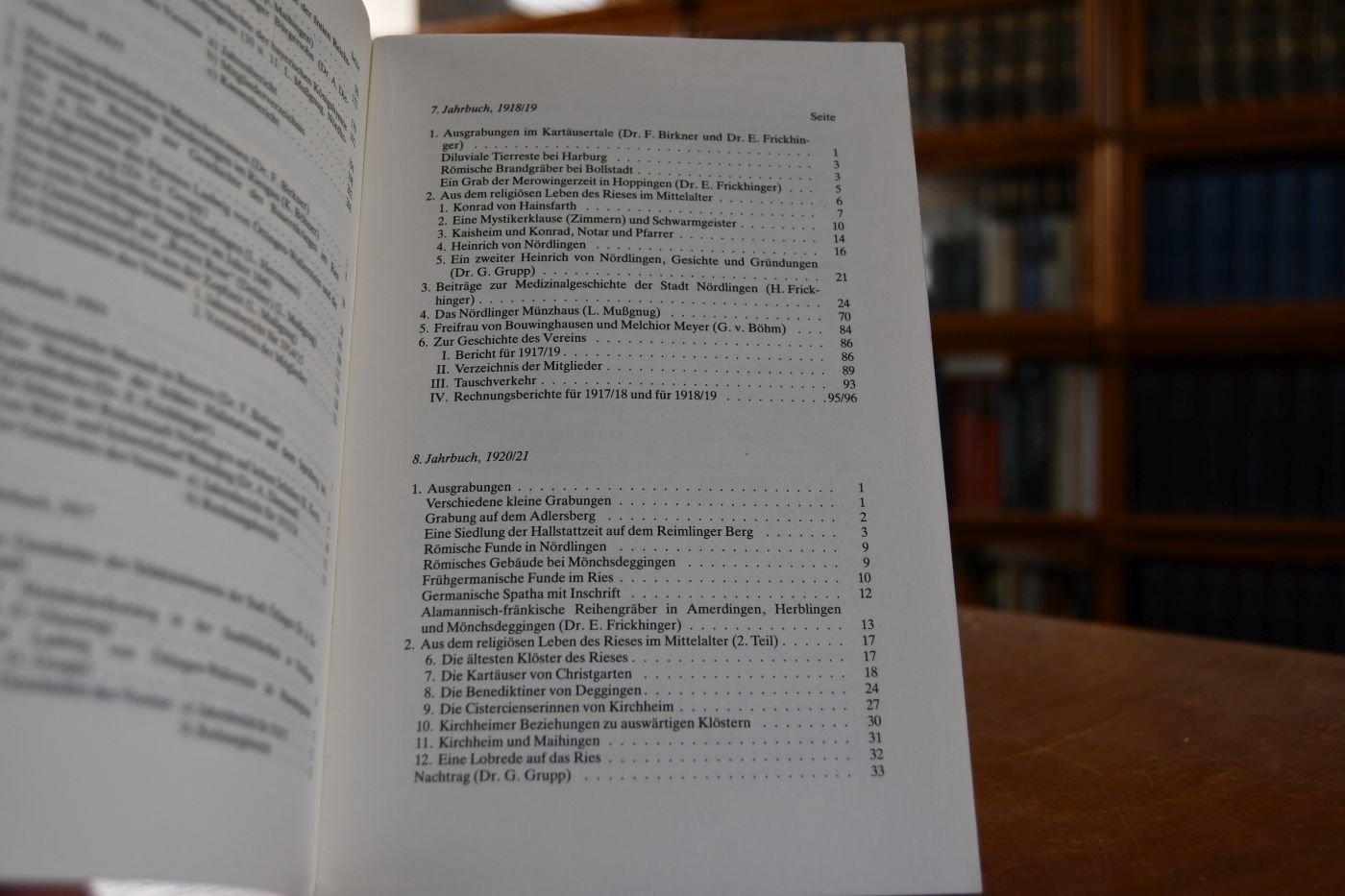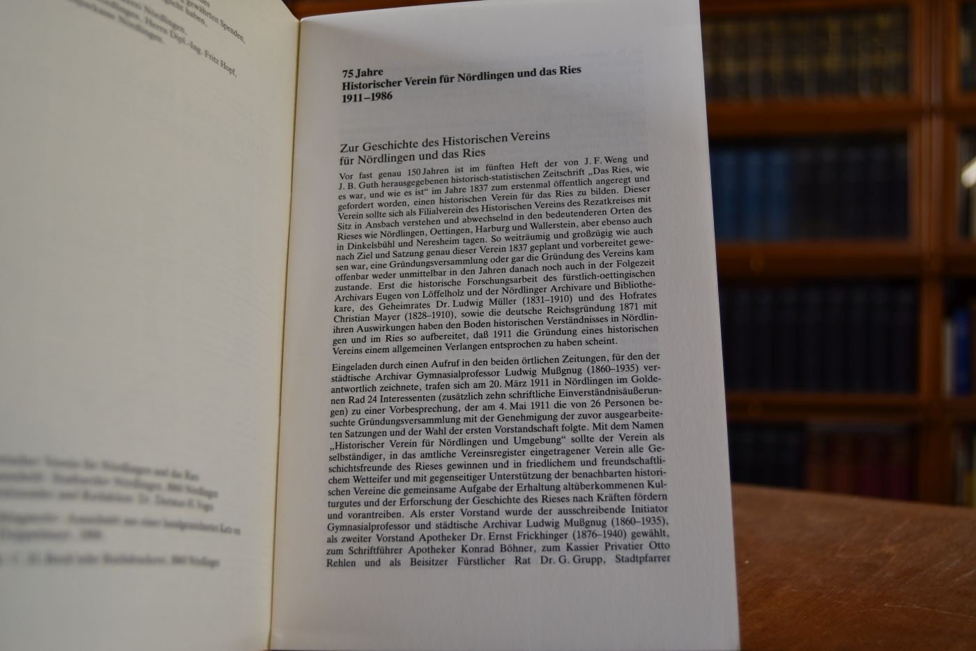75 Jahre Historischer Verein für Nördlingen und das Ries, 1911-1986. Mit einem Inhaltsverzeichnis aller Jahrbücher des Historischen Vereins für Nördlingen und das Ries, Jahrbuch 1, 1912 bis Jahrbuch 27, 1985.