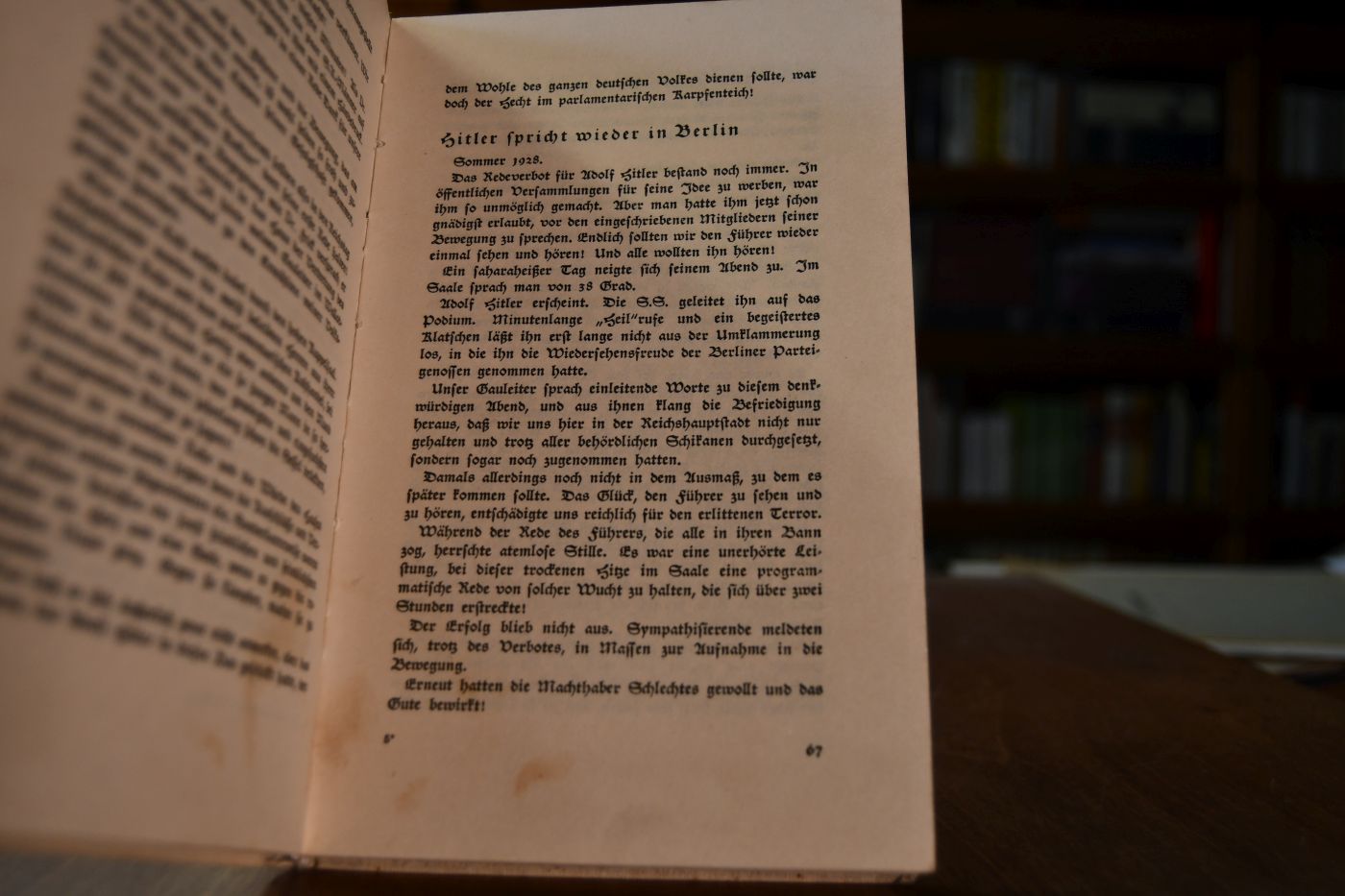 Beschreibung Einband berieben, angeschmutzt und fleckig. Schnitt fleckig. Vorderes Vorsatz entfernt. Immer wieder etwas fleckig. Anonym verfasste "Kampfzeit"-Darstellung. Das Buch behandelt schwerpunktmäßig die ersten Jahre der SA in Frankfurt/M. und später Berlin. Eine der wenigen zeitgenössischen Darstellungen, die sich mit dem Stennes-Putsch befassen.