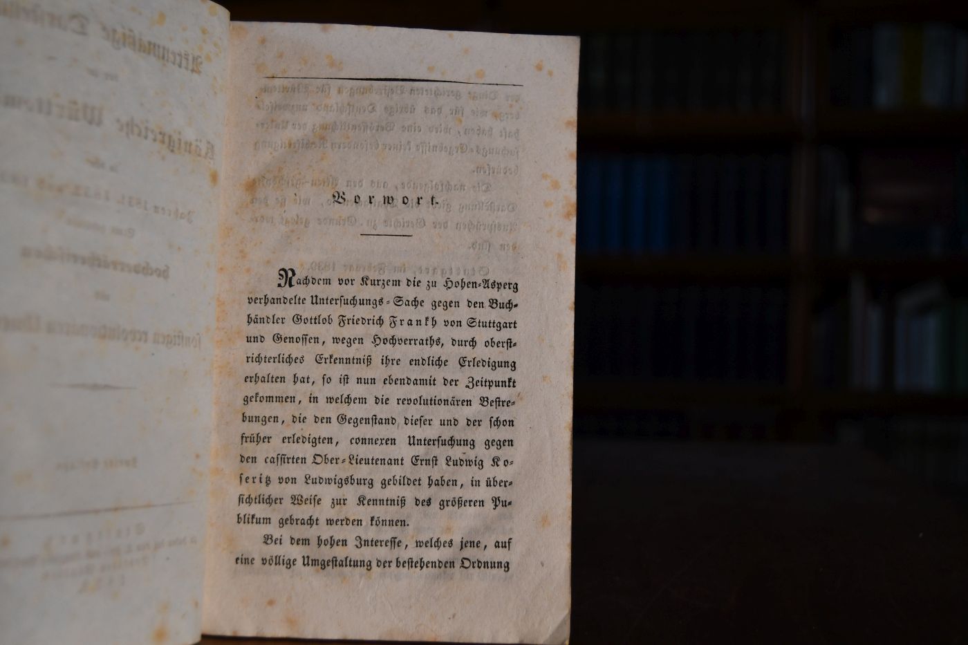 Aktenmäßige Darstellung der im Königreiche Württemberg in den Jahren 1831, 1832 und 1833 Statt gehabten hochverrätherischen und sonstigen revolutionären Umtriebe.